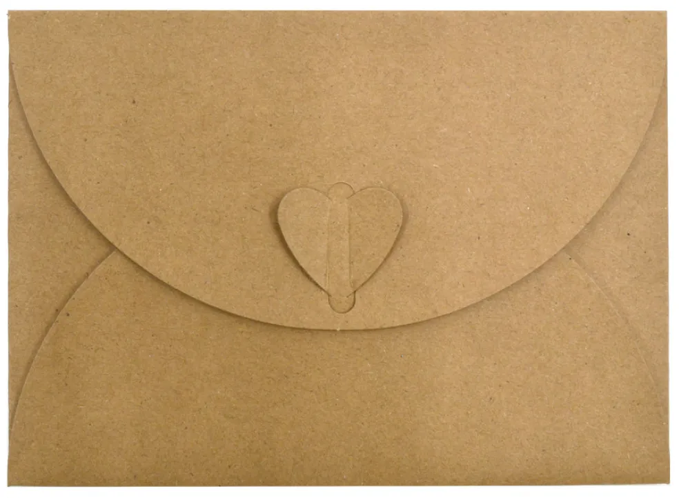 Kuorikortti askarteluun. Pakkaus sisältää 10 kappaletta kuorikortteja, joissa on sydämen muotoinen suljenta. Kortin sisälle sopii esim. hääkutsu, lahjakortti tai rahalahja. Kuorikortti mahtuu C6-kokoiseen kirjekuoreen. Kuorikortin vahvuus on 220g/m². Tuote on happovapaa.