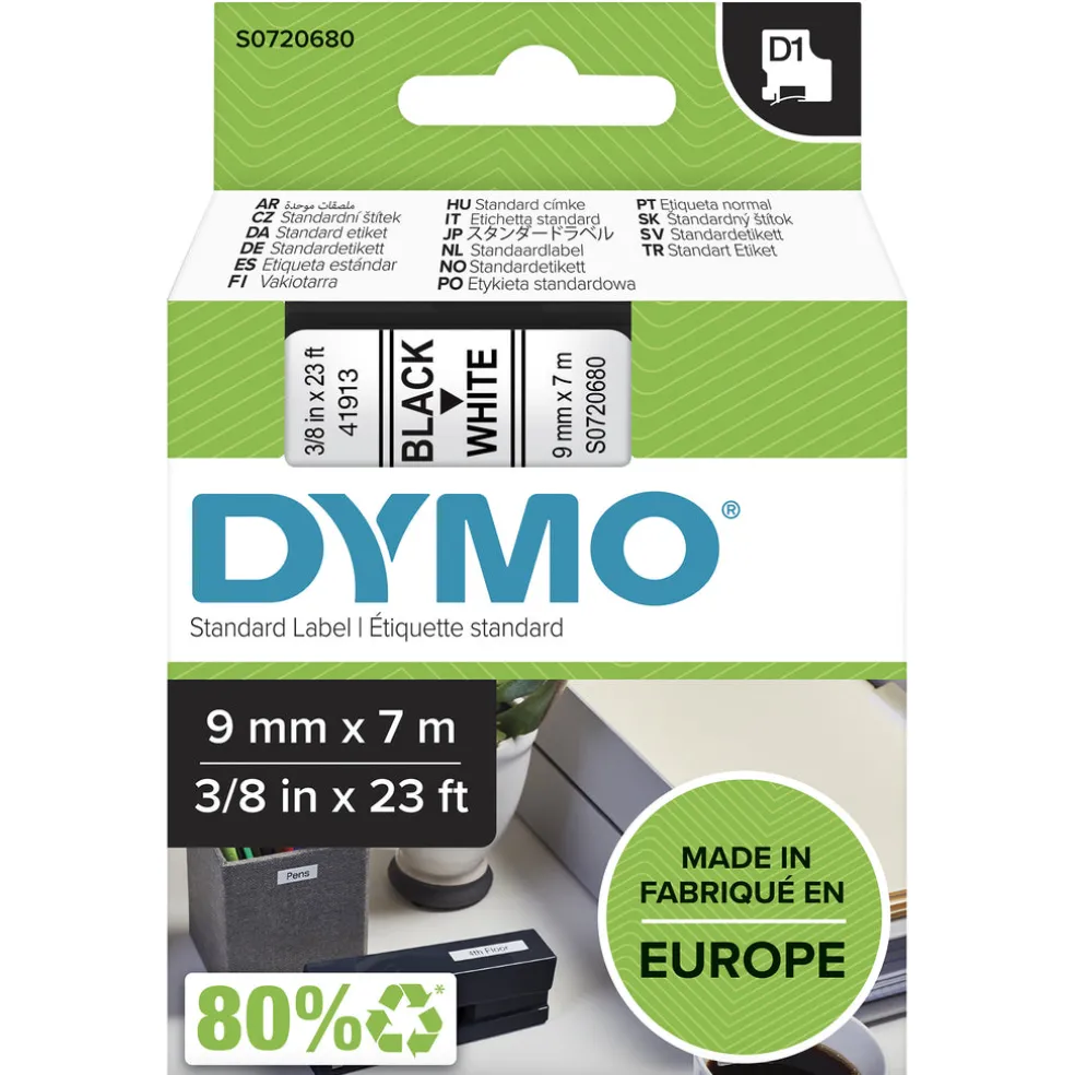 DYMO D1 Tarratulostinteippi musta/valkoinen 9mmx7m