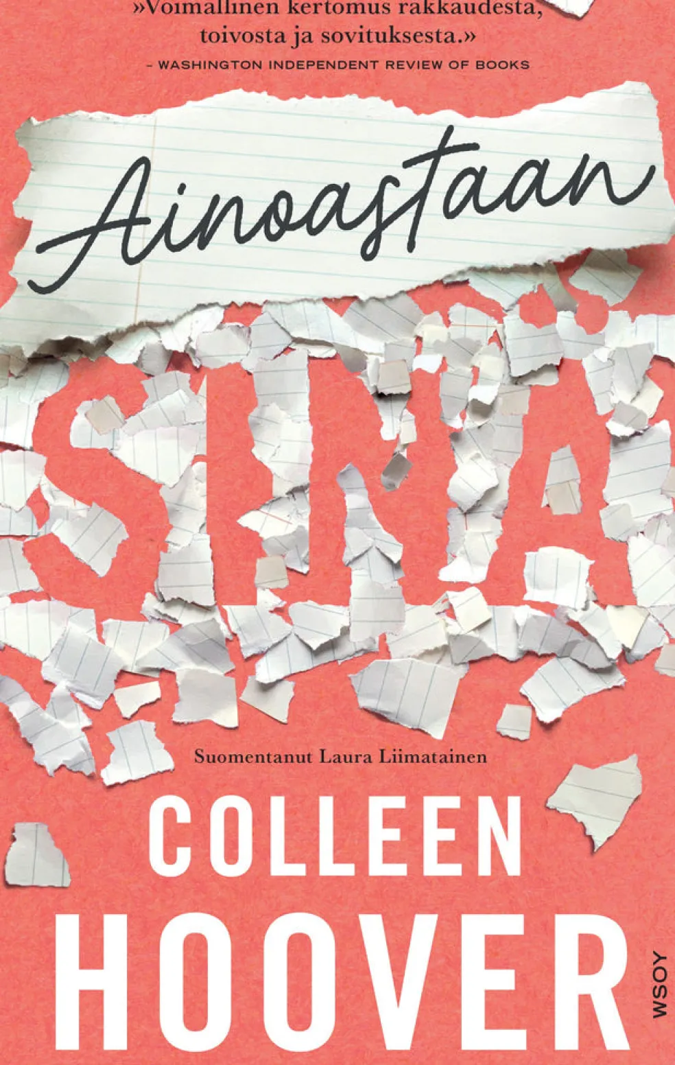 Colleen Hoover (s. 1979) on yhdysvaltalainen menestyskirjailija. Hänen teoksissaan sydämeenkäyvä romantiikka yhdistyy kipinöivään erotiikkaan, mikä on luonut hänelle valtavan fanikunnan sosiaalisessa mediassa, erityisesti TikTokissa. Hoover on kolmen lapsen äiti ja asuu Texasissa.