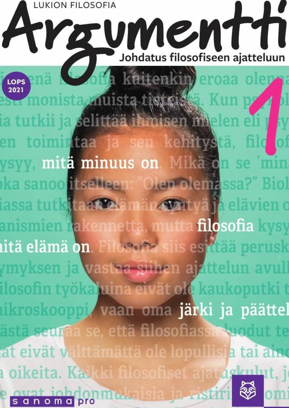 Argumentti 1 Johdatus filosofiseen ajatteluun on lukion opetussuunnitelman 2021 mukainen filosofian ensimmäisen moduulin oppimateriaali. Opiskelijalähtöisesti kirjoitetut sisällöt innostavat filosofian pariin ja antavat oivalliset välineet ajattelutaitojen kehittämiseen.