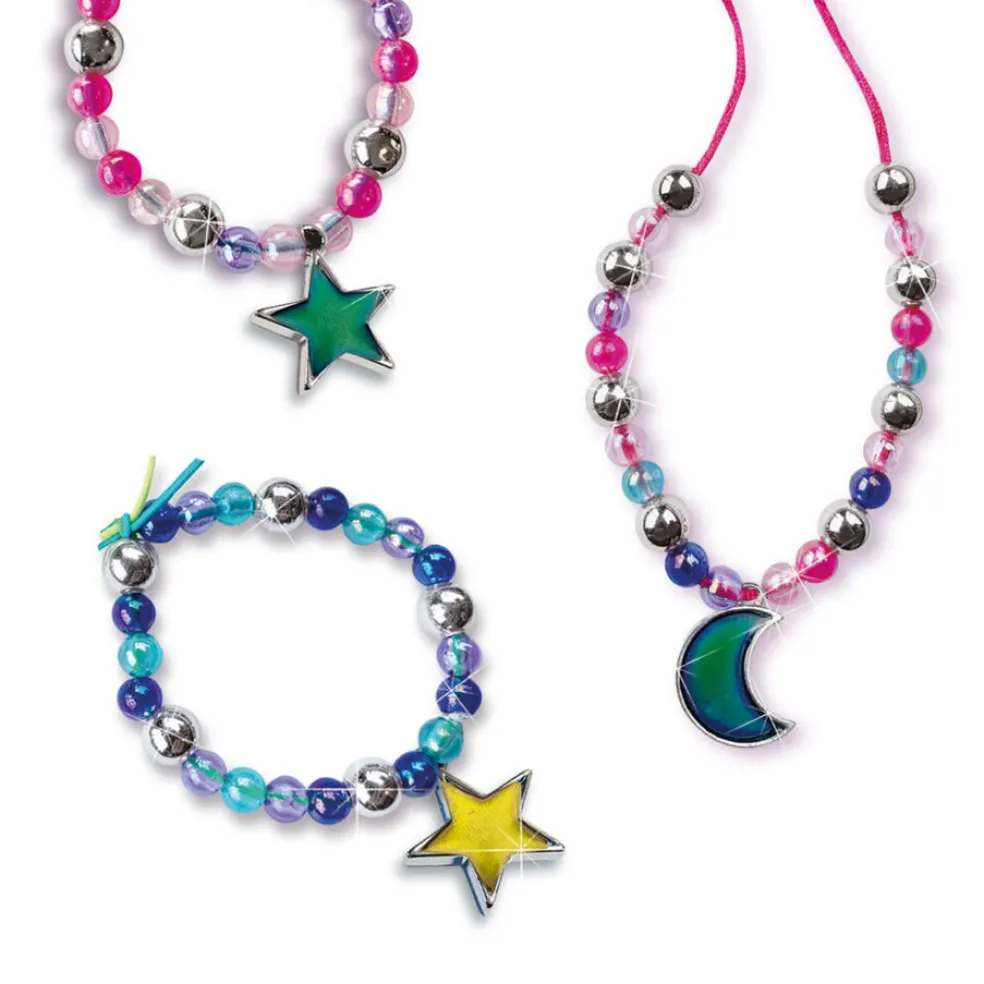 Tämä Galaxy-askartelusetti on täydellinen valinta kaikille, jotka rakastavat helmien ja korujen tekemistä. Setti sisältää kaksi väriä vaihtavaa tähtiriipusta, yhden väriä vaihtavan kuuriipuksen, helmiä, hopeisia helmiä, sateenkaaren värisen joustonauhan ja vaaleanpunaisen satiinilangan. Mukana tulevat myös selkeät ohjeet, joiden avulla voit luoda upeita ja persoonallisia koruja. Anna mielikuvituksesi lentää ja luo uniikkeja koruja, jotka heijastavat omaa tyyliäsi. Tämä setti tarjoaa kaiken tarvittavan, jotta voit nauttia luovasta askartelusta!