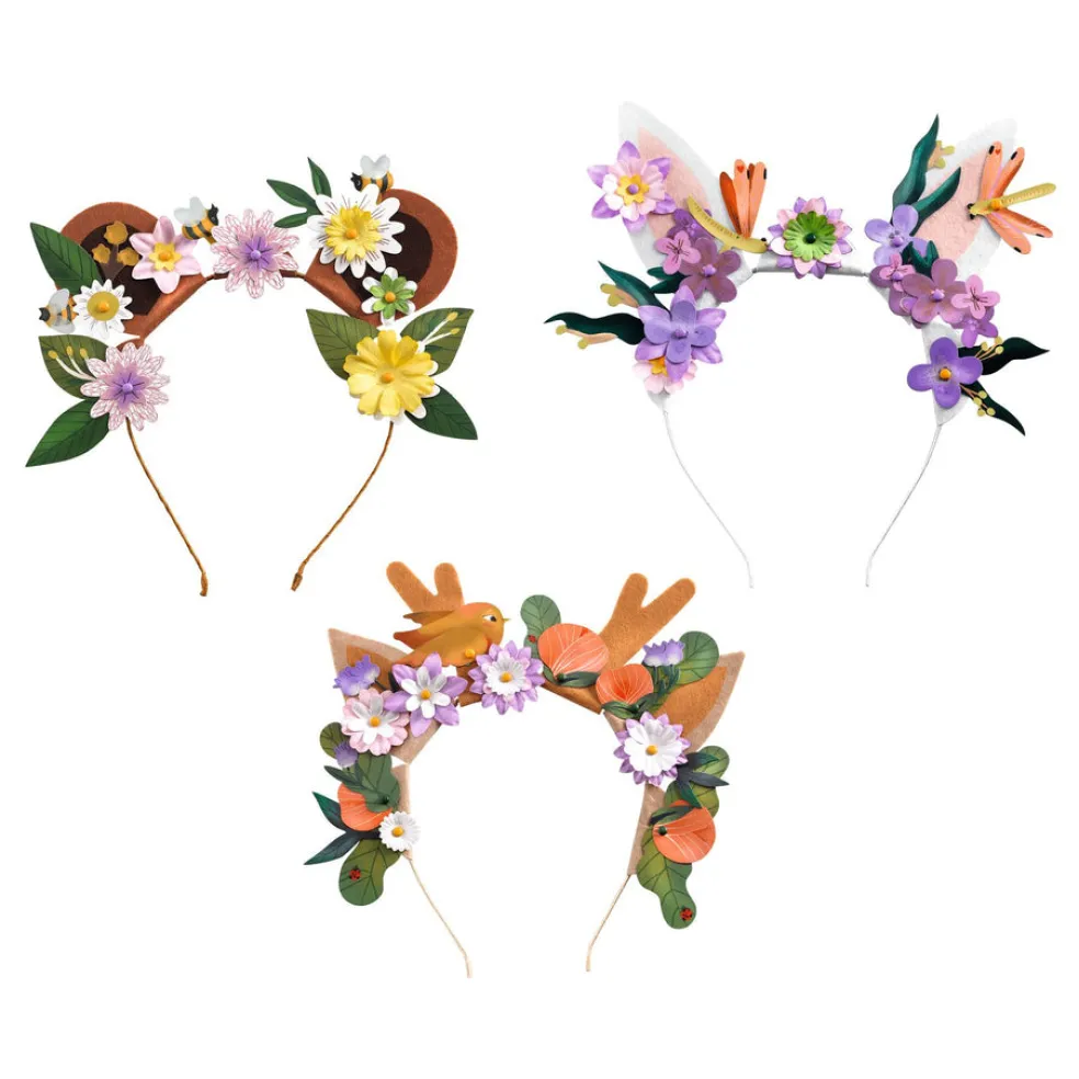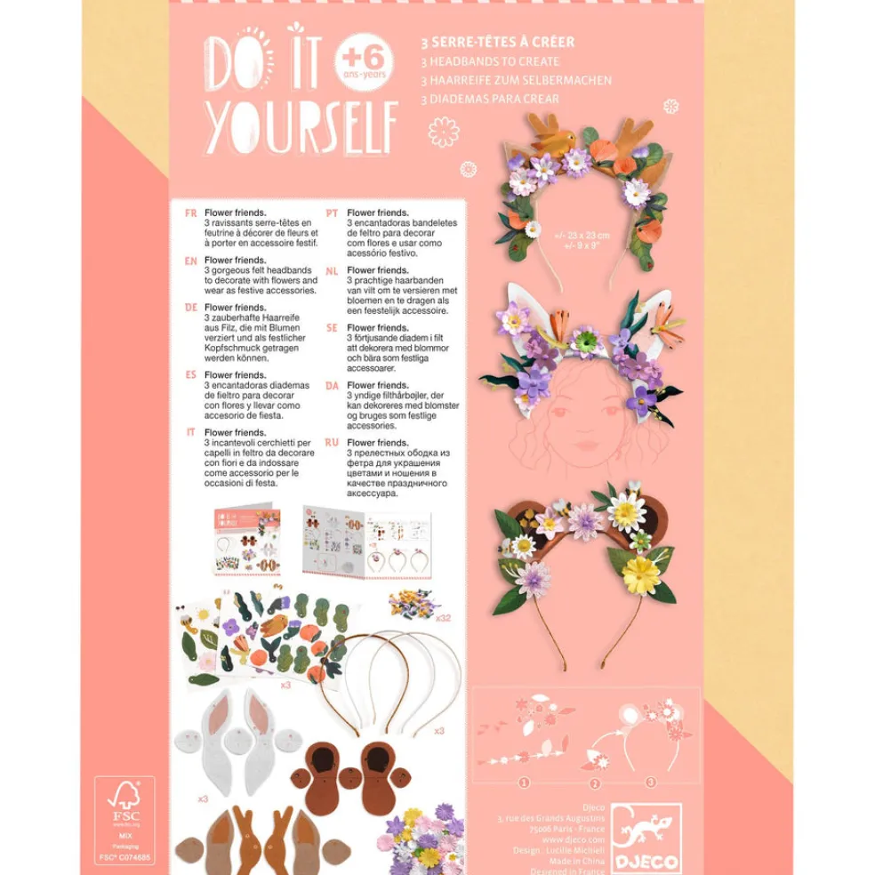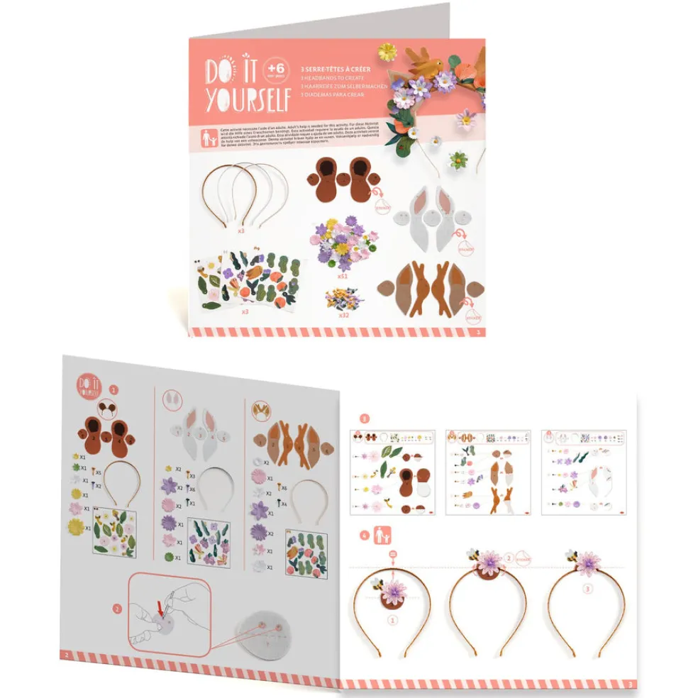 Tee itse 3 upeaa eläinpantaa lapsille, jotka koristellaan kukilla ja niihin kiinnitetään korvat. Korvat on valmistettu joustavasta huovasta. Kun ne on koristeltu, on ne helppo kiinnittää nauhalla päällystettyihin joka koon hiuspantoihin.
