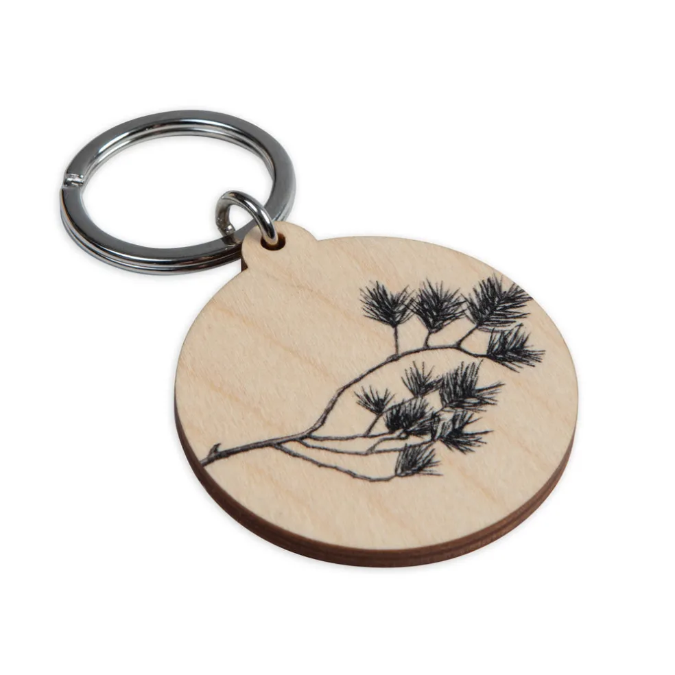 Avaimenperä Havu koivuvaneria vaneriosa n.5,2×5,7cm, renkaan halkaisija 3cm avainlippu ja Design from Finland merkki