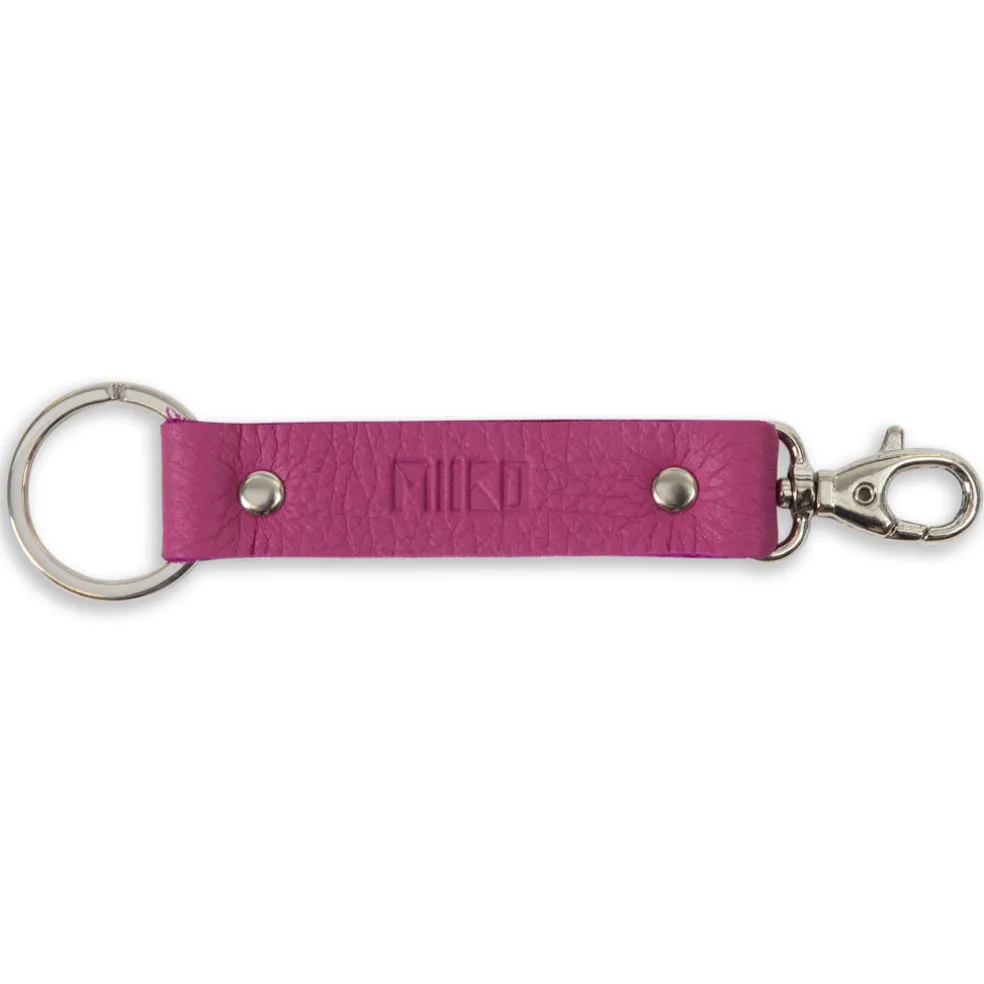 Avaimenperä pinkki hirvennahkaa 14×3 cm avainlippu ja Design from Finland merkki