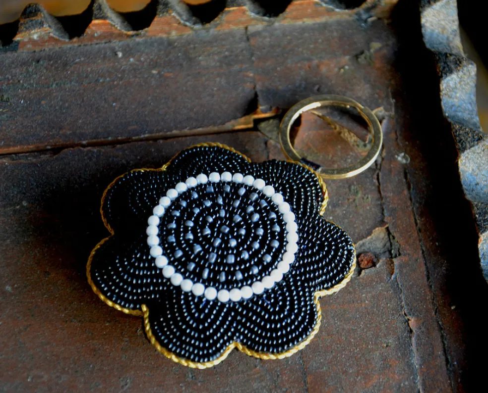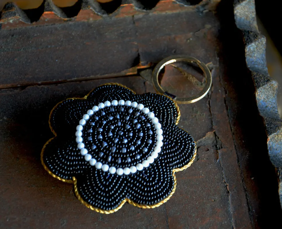 Minimalistisen mustavalkoinen mustaorvokki on pohjoismaisen mustavalkoiseen pukeutuvan luottoystävä. Ripaus kultaa tuo Mustaorvokkiin ylellistä luksusta. Orvokissa lasihelmikirjailun valmistaneen käsityöläisen signeeraus.