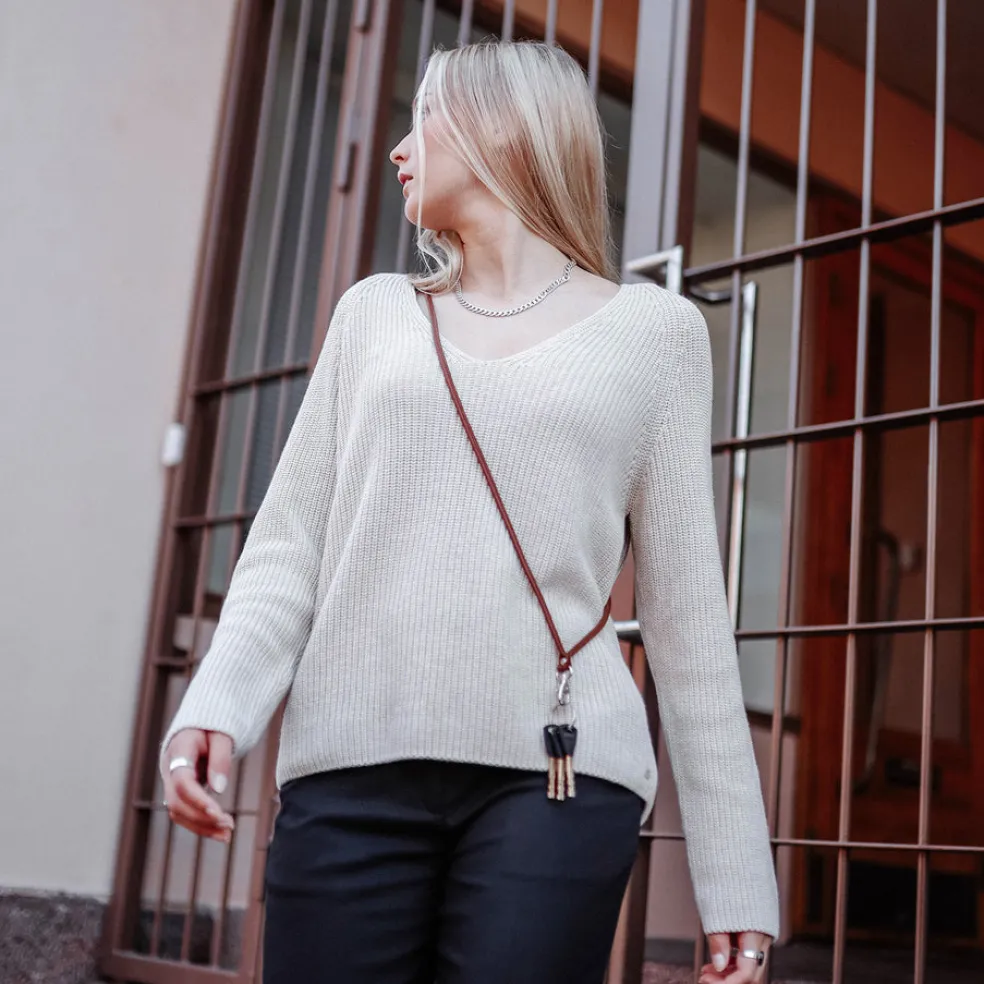Hirvennahkainen avainnauha näyttää ja tuntuu hyvältä! Minimalistinen tyyli sopii asuun kuin asuun, ja unelmaisen pehmeä hirvennahka tuntuu miellyttävältä kaulalla. Avainnauha on näppärä ja tyylikäs asuste, jonka avulla avaimet ja avainkortit pysyvät tallessa töissä ja vapaalla. Nauhaan on helppo kiinnittää ja irrottaa avaimet. Pitkä avainnauha sujahtaa myös helposti vaikkapa työtakin taskuun.