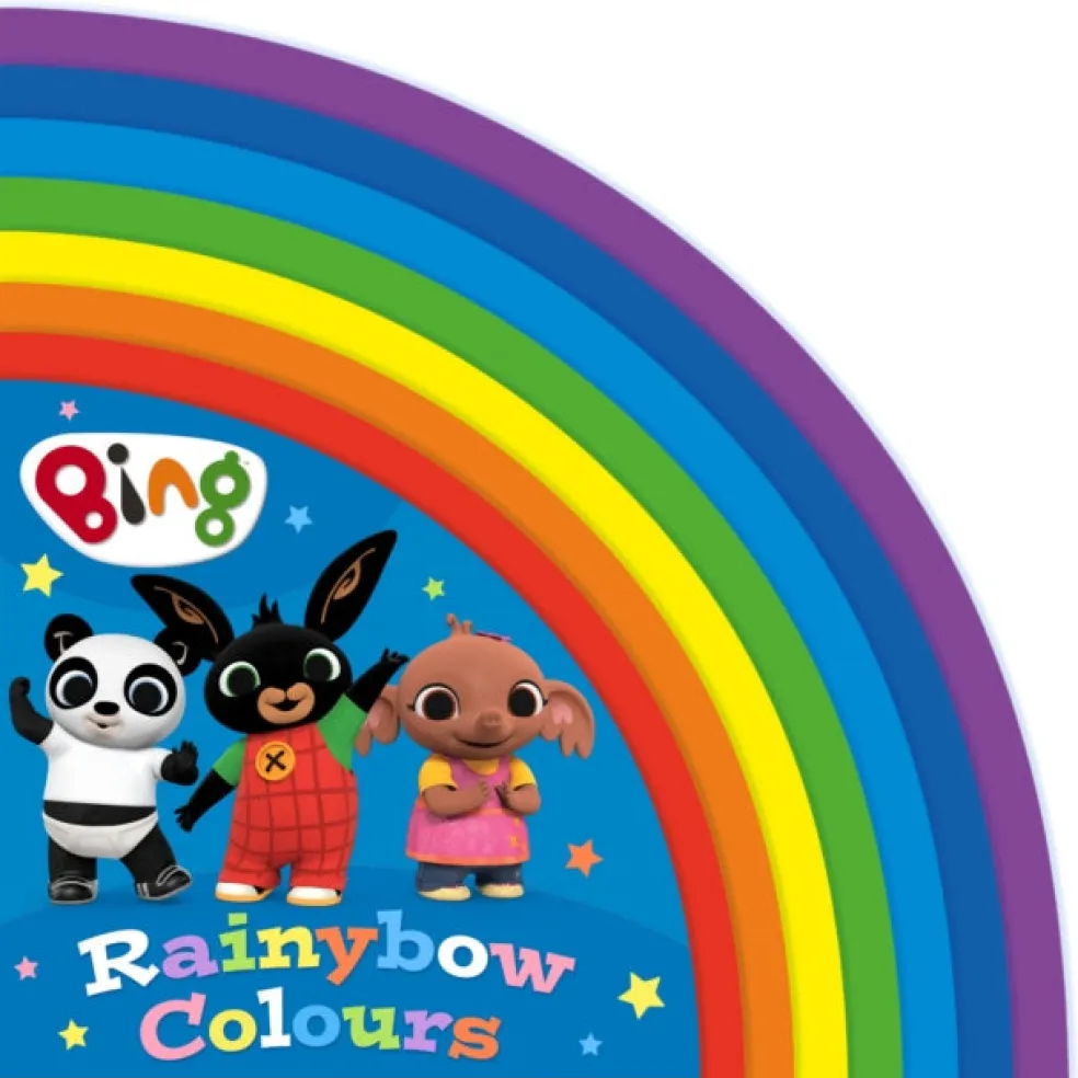 Learn the colours of the rainbow with Bing in this fantastic shaped board book for children!