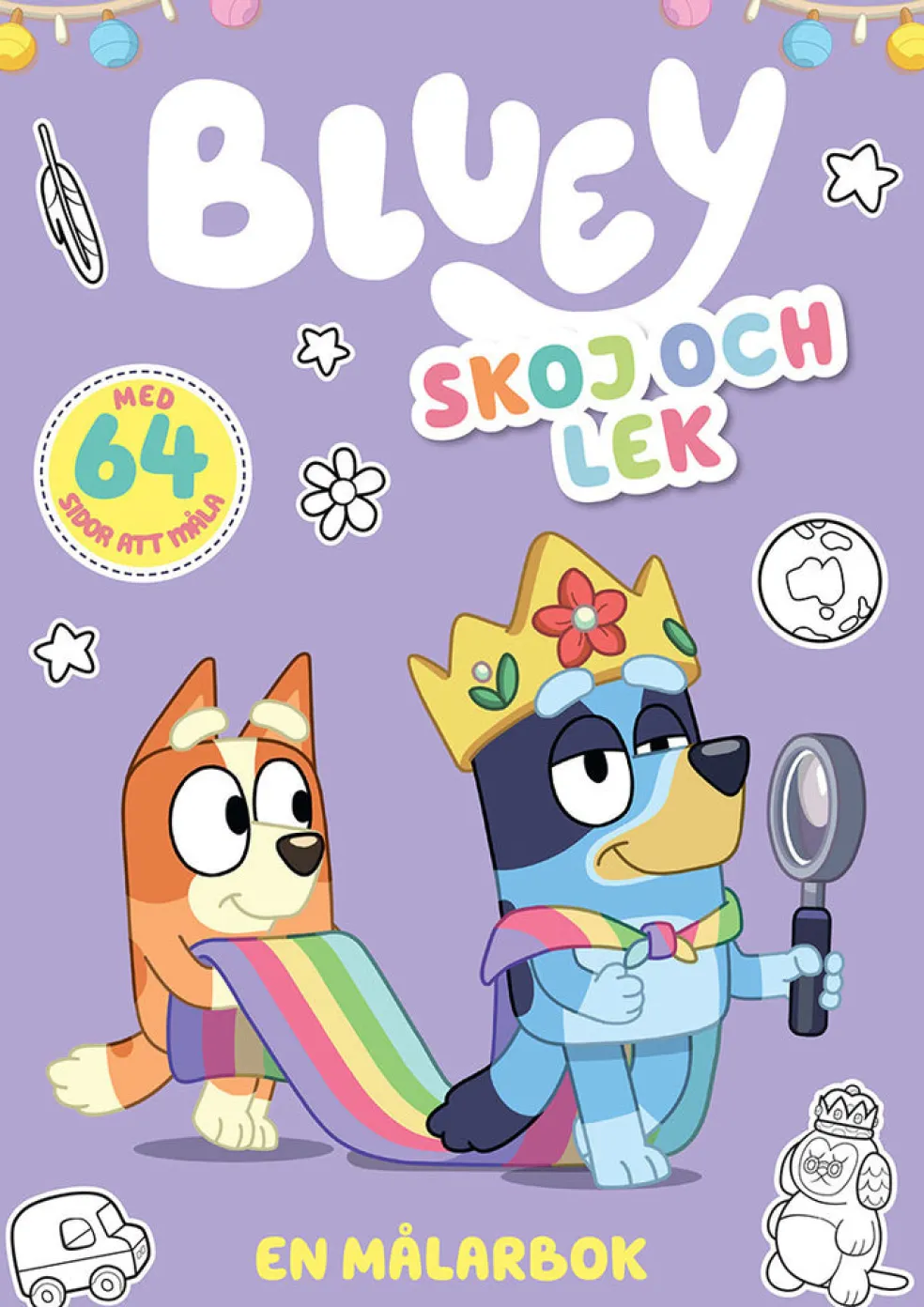 Bluey och Bingo älskar att hitta på sina egna tokiga lekar. Här kan du måla Tanter-leken, Snobbiga restaurangen, Muffins ballerinadans och alla de andra galna lekarna som gör Blueys värld till något helt unikt.