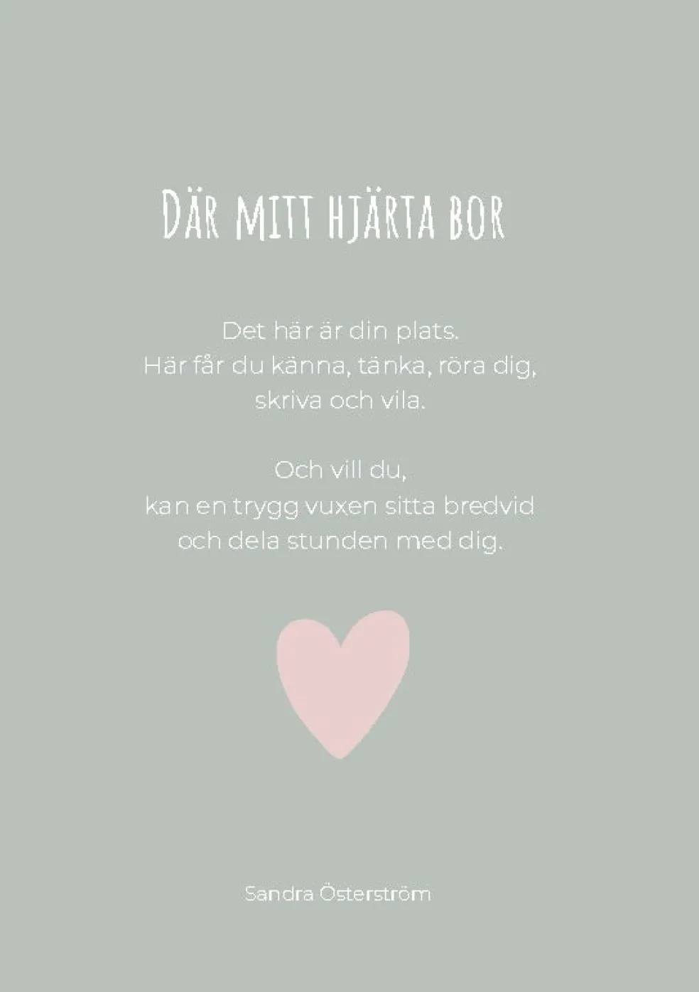 Där mitt hjärta bor är varsamt skapad och tryckt i ett material som känns lite extra fint för barnet att bära med sig.
