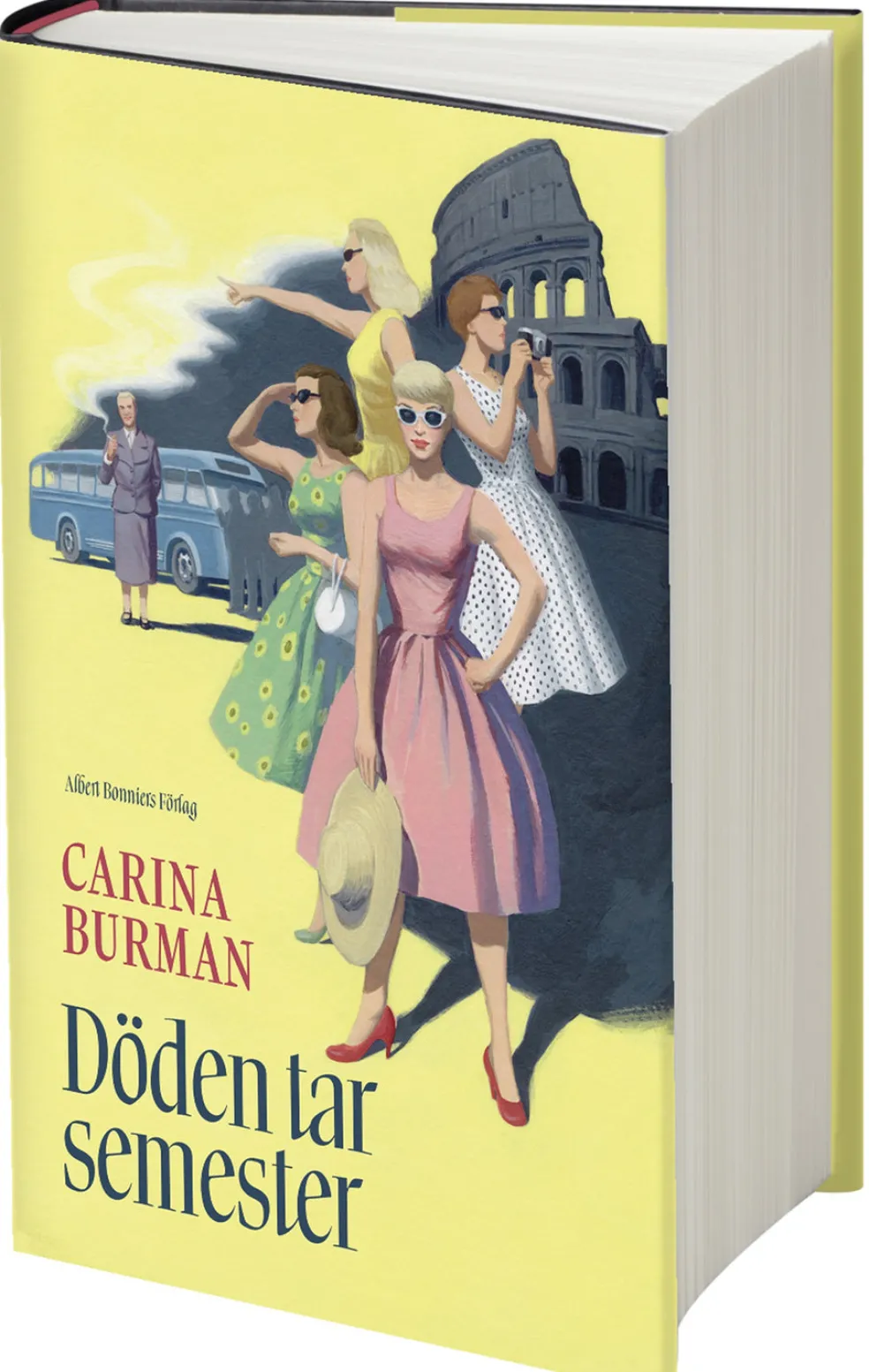 April 1956: Deckarrecensenten Florence Granat segnar ner på tidningsredaktionen och beordras vila i Södern, långt från stressen i gamla Klara. En bussresa till Rom tycks som den perfekta återhämtningen, men knappt har de nått kontinenten förrän Florrie får onda aningar, som bekräftas av ett mystiskt dödsfall. Medan bussen rullar vidare avslöjar Florrie den ena efter den andra av medpassagerarnas hemligheter, och vid resans mål finner hon lösningen – och den eviga staden.Carina Burman har skrivit åtskilligt om Rom och utgav 2023 ”Drottningar och pretendenter. Om guldålderns deckarförfattarinnor”. ”Döden tar semester” är en femtiotalsdeckare i Maria Langs och Agatha Christies efterföljd, för nostalgiker, Italienälskare och historieintresserade.