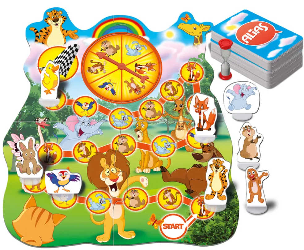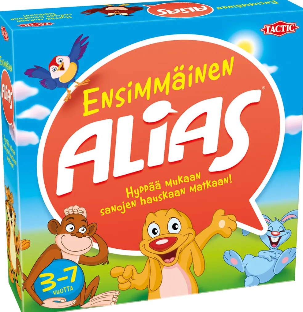 Ensimmäisen Aliaksen parissa perheen pienimmät pelaajat hyppäävät sanojen hauskaan maailmaan! Osaatko selittää sanan mainitsematta mitään sen osaa? Missä olet nähnyt kyseisen asian, kuinka suuri se on ja miltä se näyttää? Laajenna sanavarastoasi hauskalla tavalla! Liity värikkäiden hahmojen seuraan ja pidä hauskaa sanojen kanssa! Ikäsuositus: 3-10 v. Pelaajien määrä: 3-8. Pelin kesto: 15+ min.