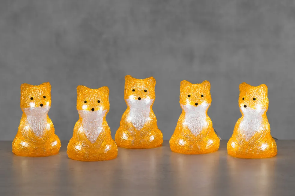Finnlumor Kettupoikue 5-osainen valosarja on täydellinen tapa piristää talvipihaa tai sisätiloja. Suloiset akryylista valmistetut ketunpoikaset tuovat iloa ympärilleen. Valosarjaan kuuluu 5 kettua, joista jokaisen sisällä on 8 LED-valoa. Kunkin ketun koko on 10 x 10 x 14 cm, ja mukana tulee 5 metrin liitäntäjohto. Valosarjassa on IP44-luokiteltu muuntaja, joten se sopii sekä sisä- että ulkokäyttöön. Luo tunnelmaa ja iloa ympärillesi tällä lumoavalla valosarjalla!
