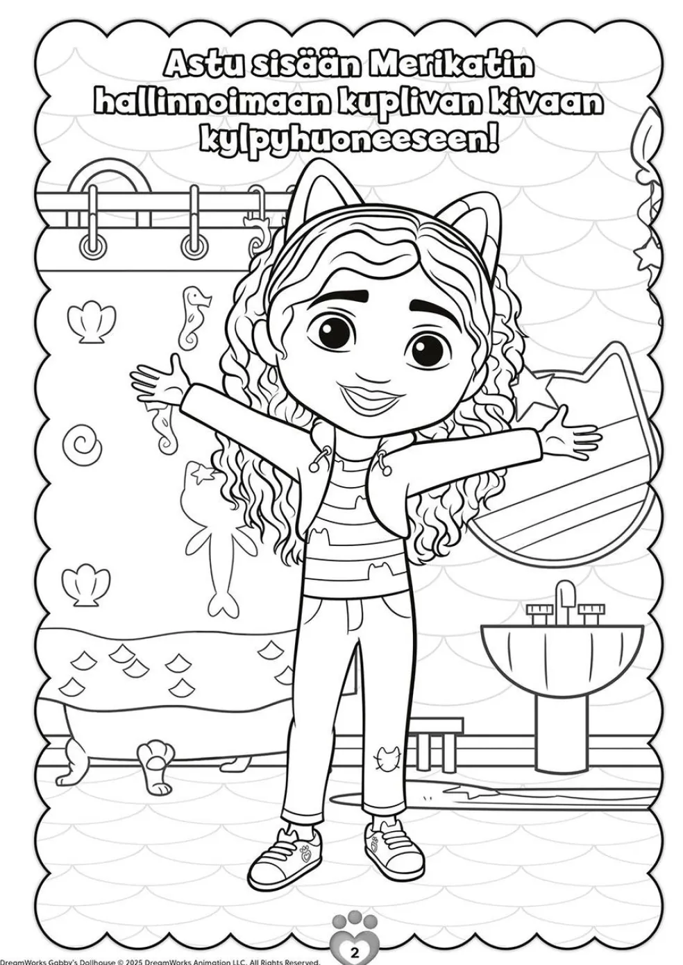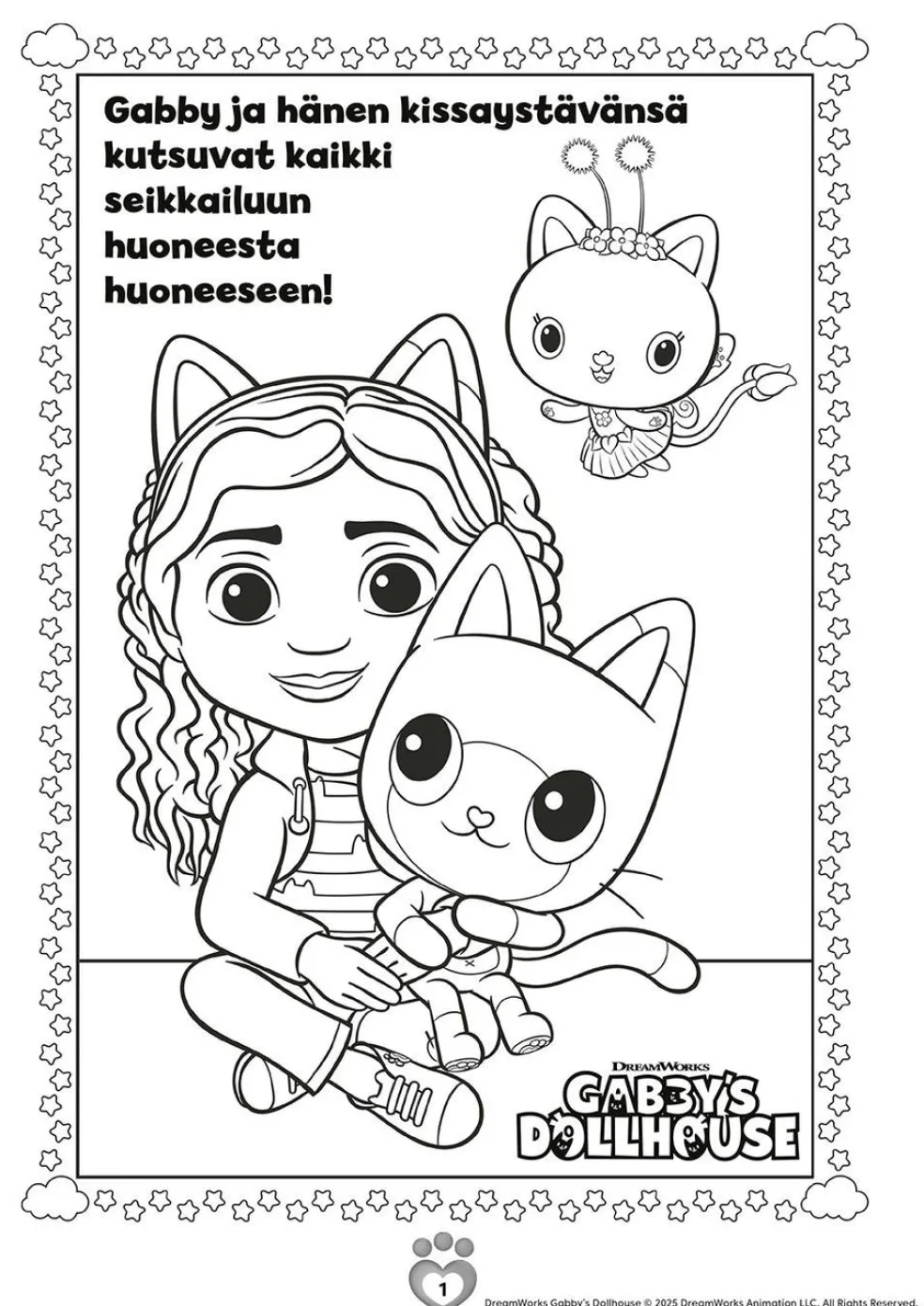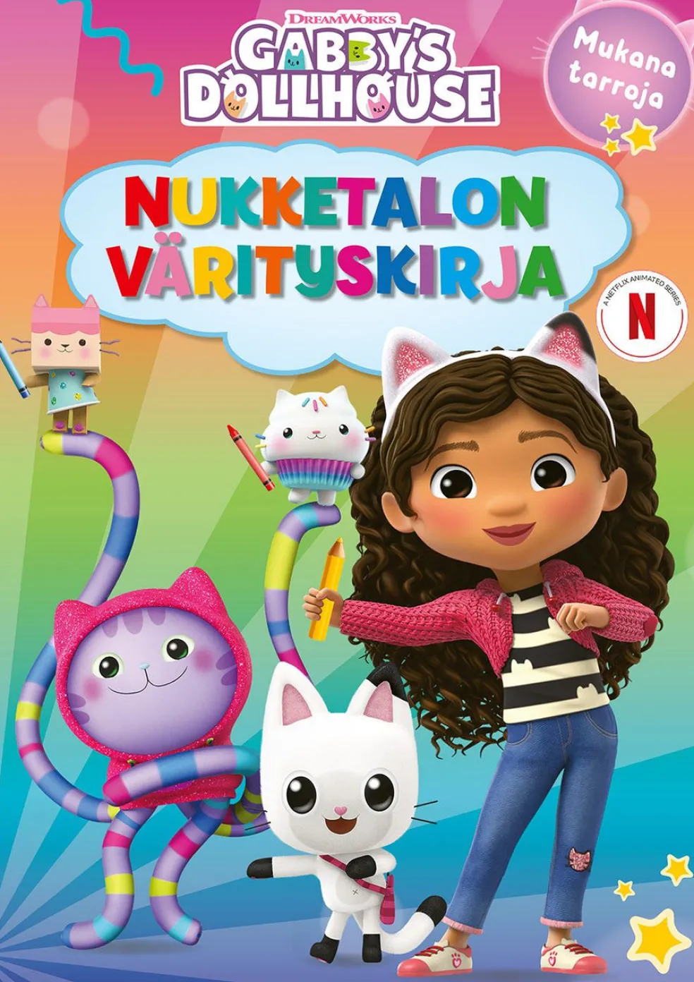 Gabbyn nukketalo -sarjasta tuttu puuhakas Gabby askartelee ja seikkailee kissakavereidensa kanssa kivassa värityskirjassa. Mukana myös tarroja.