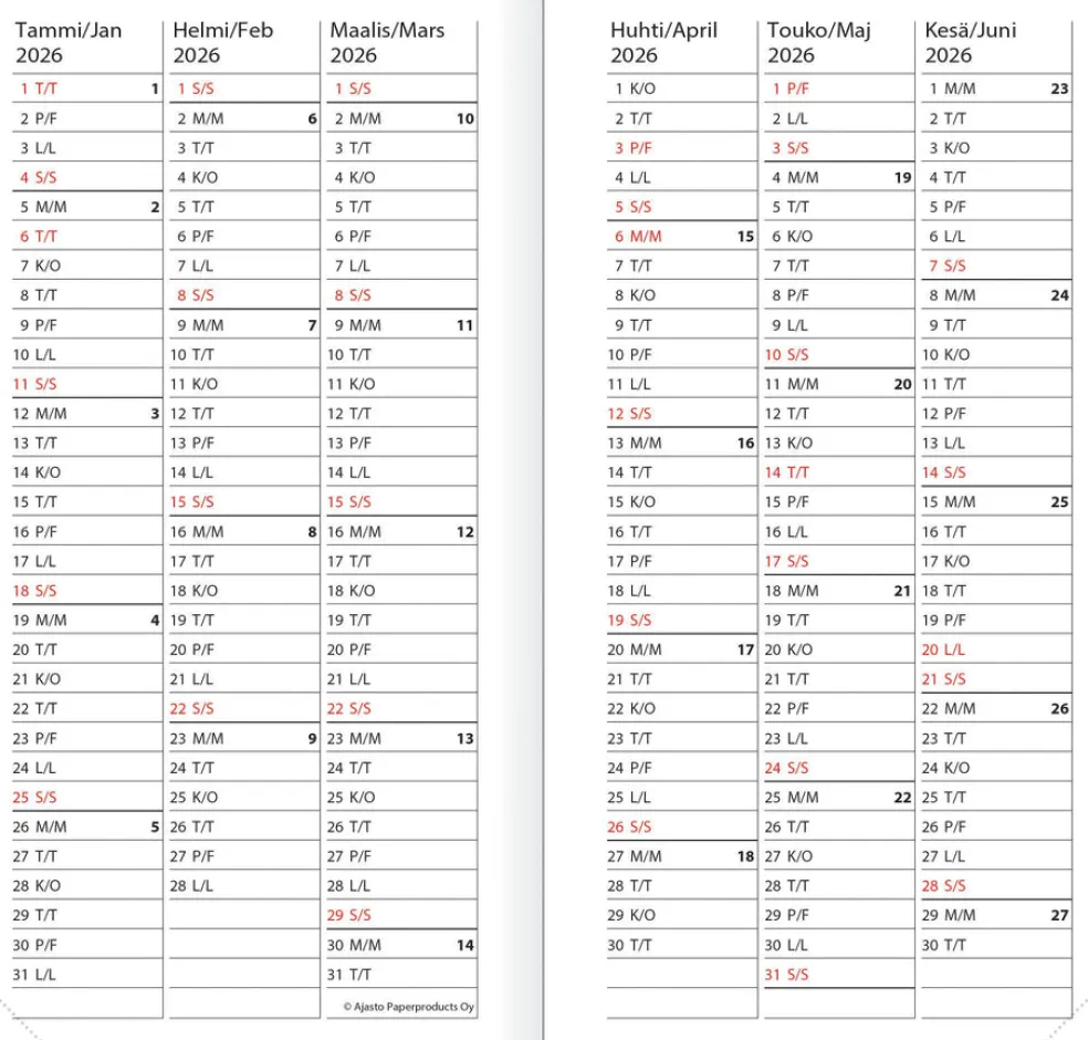 - Thema-luokitus Vuosikirjat, kalenterit, almanakat; Paperikauppatavarat