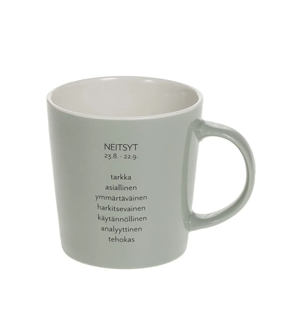 Tämä kaunis keraaminen muki on täydellinen lahja neitsyt-merkkiselle ystävällesi tai itsellesi. Sen mitat ovat 9,4 x 7,7 x 9,6 cm ja se vetää 400 ml juomaa. Muki on valmistettu kestävästä keraamisesta materiaalista, joka pitää juoman lämpimänä pidempään ja se on myös helppo puhdistaa. Sen kaunis muotoilu sekä horoskooppimerkin kuvailu tekevät siitä ainutlaatuisen lahjan tai lisän omaan kokoelmaan. Nauti aamukahvista tai rentoudu iltateen äärellä tämän kauniin horoskooppimukin kanssa.