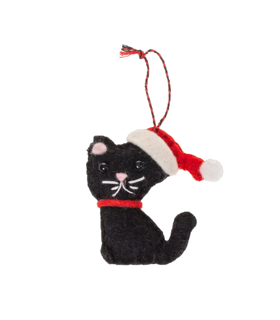 Ripustettava kissakoriste, huopaa, väri musta/punainen. Koko 12x10x2,5cm