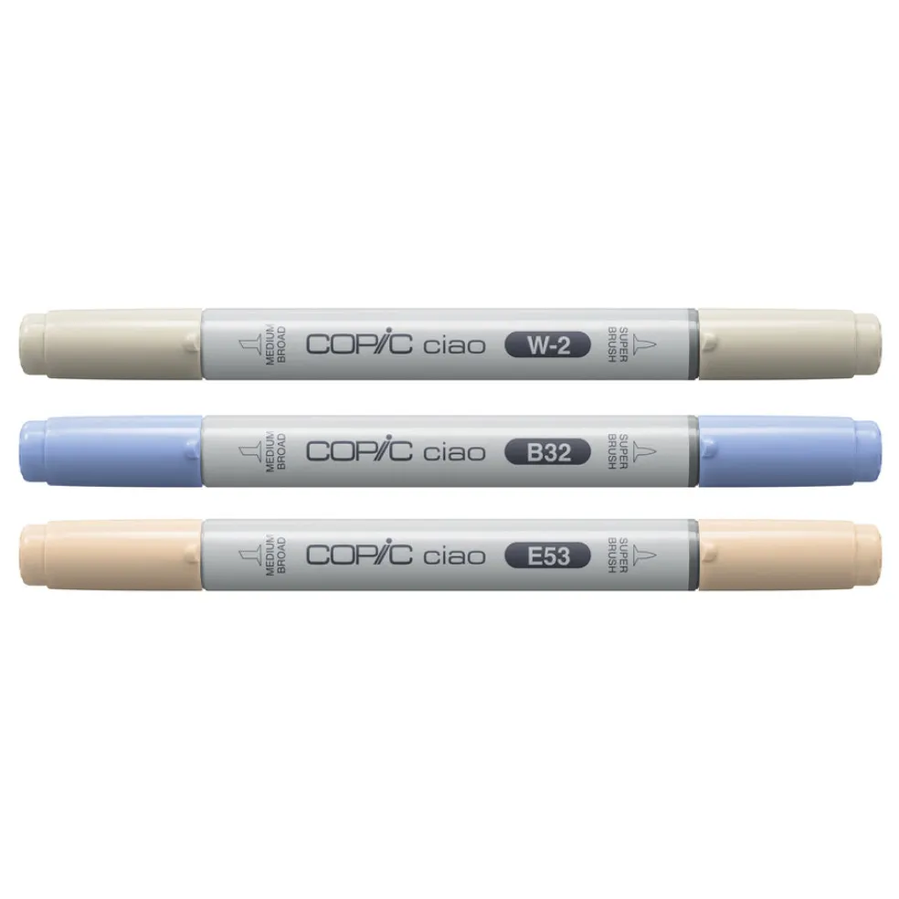 Copic-3 Layer & Mix on uusin lisäys suosittuun Copic tuoteperheeseen. Lajitelmiin on valittu hyvin yhteensopivia sävyä, jotka ovat ihanteellisia kerrostamiseen, sekoittamiseen ja varjostukseen. Lajitelmat tarjoavat helpon tavan ostaa oikeita sävyjä sekä tietysti myös lahjaksi. Tussikynissä on kaksi kärkeä, aito sivellinkärki sekä leveämpi kärki. Lajitelmassa on sävyt B-32 (Pale Blue), E-53 (Raw Silk) ja W-2 (Warm Gray No. 2). Tussikynät ovat täytettäviä ja koko sarjassa on 180 sävyä. Copic on ainutlaatuinen japanilainen huopakynäsarja, jota suosivat lukuisat ammattilais-manga-taiteilijat, suunnittelijat ja kuvittajat. Saatavilla erikokoisia lajitelmia. Muista aina tarjota huopakynälehtiö kynien kanssa käytettäväksi, sillä se säästää kynien kärkeä eikä ime väriä liikaa.
