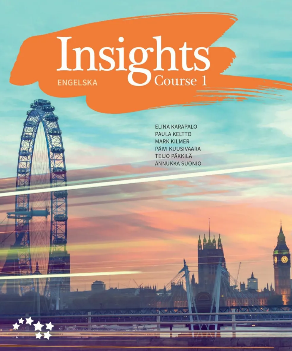 Under kurs 1 utvecklar vi våra studiefärdigheter, bekantar oss med olika kommunikationsstrategier och övar på att samarbeta. Ämnesområden som tas upp i boken är livet som ung, studier, familj, finländskhet och regional identitet samt engelska som ett globalt språk. Dessutom övar vi på självvärdering och bekantar oss med principerna för den gemensamma europeiska referensramen för språk.