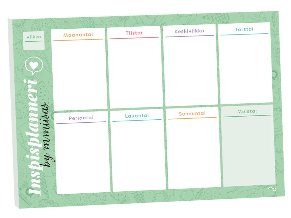 Suunnittele omat inspiroivat viikkosi! Repäisylehtiö, jossa on suunnitelmasivuja koko vuoden tarpeeseen ja ylikin.
