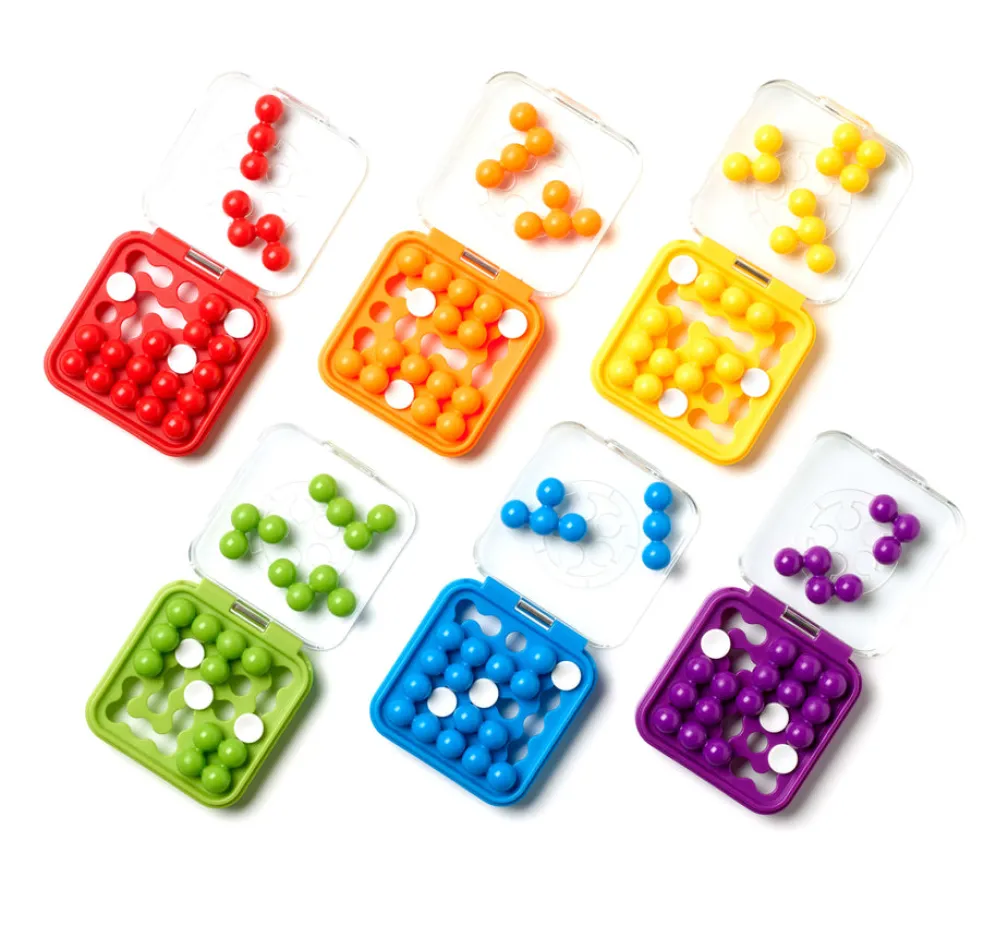 Maksimaalisesti hupia, minimaalisessa koossa! Taskukokoisen SmartGames IQ Mini -logiikkapelin voit ottaa mukaasi minne vain! Poista palat pelilaudalta ja luo uusi haaste siirtämällä valkoisia estenappuloita. Onnistutko sovittamaan kaikki 12 värillistä palaa juuri rakentamallesi pelilaudalle? Pelissä on lukematon määrä haasteita. Valitse SmartGames IQ Mini –peleistä suosikkivärisi ja haasta itsesi, ystäväsi ja perheesi! Löydät lisää haasteita, vinkkejä ja ratkaisut haasteisiin QR-koodilla. SmartGames IQ Mini kulkee mukanasi minne vain!