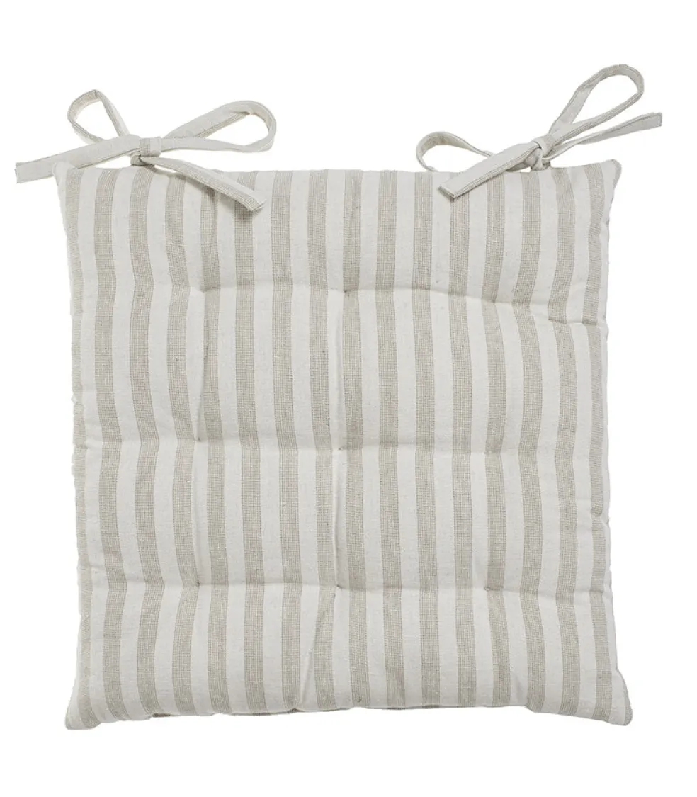 Tämä puuvillainen istuintyyny on täydellinen lisäys sisustukseesi. Sen beigevalkoraidallinen kuviointi tuo raikkautta ja tyylikkyyttä mihin tahansa tilaan. Istuintyyny on kooltaan 38 x 38 cm ja se toimitetaan yksittäispakkauksessa. Voit käyttää tätä istuintyynyä esimerkiksi tuolilla, sohvalla tai sängyllä, jotta saat lisää mukavuutta ja väriä huoneeseesi. Luo kodikas ja viihtyisä ilmapiiri tällä kauniilla istuintyynyllä.