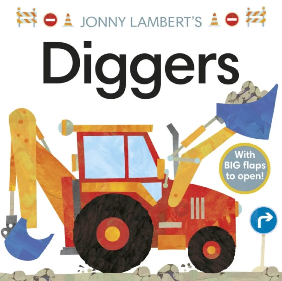 Turn the pages and lift the flaps to watch the big-wheeled digger shovel and scoop up the rubble with its big metal bucket, see how the road roller chugs slowly along to flatten the ground, and watch the mini dumper truck carry its heavy load of building materials. With busy vehicles pushing, pulling, tipping, rumbling, chugging, scooping, and beeping, little ones will love learning about what happens on the building site, and joining in to make the noisy digger sounds.
