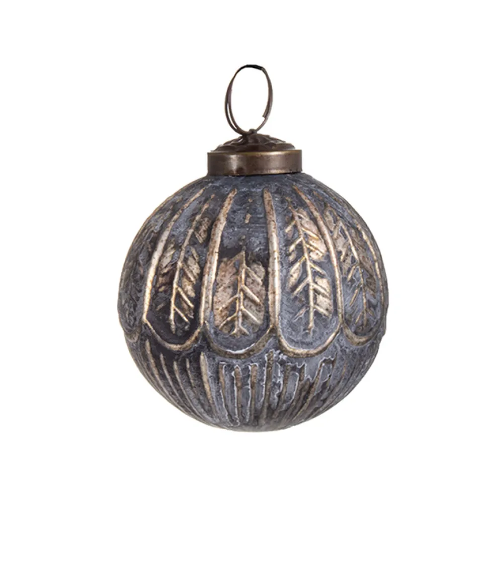 Lasinen antiikkipintainen joulupallo Ø8cm. Ripustukseen juuttinaru.