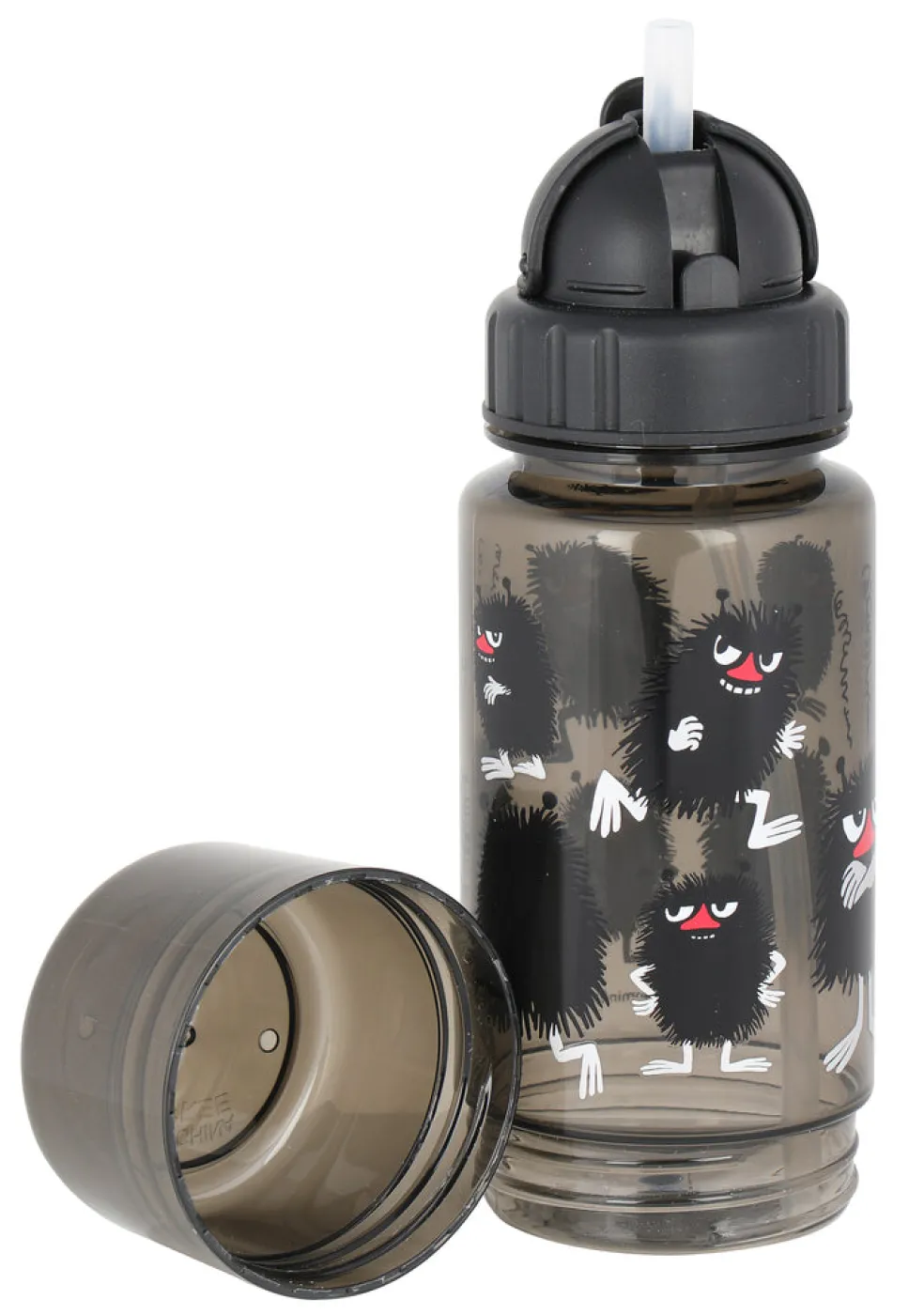 Haisuli vesipullo. Tritania ja PP-muovia. Pullon pohjassa ruuvattava säilytyspohja, jossa voi kätevästi säilyttää vaikka pähkinöitä. Pullossa on pilli. Pullon vetoisuus on 4,5 dl ja alaosaan mahtuu 1 dl.