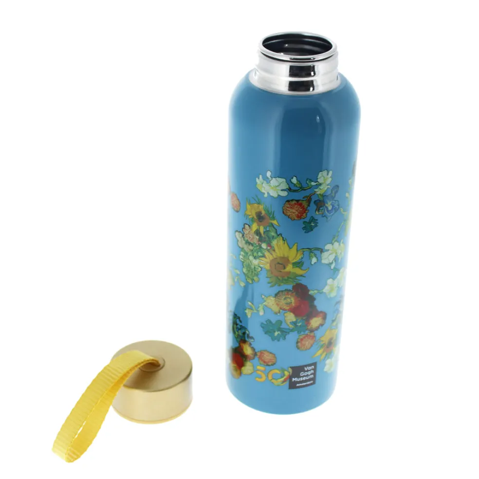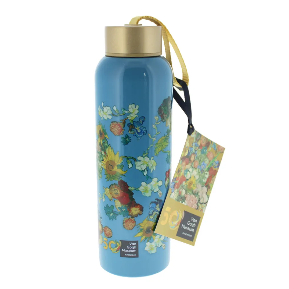 Tämä kaunis juomapullo on koristeltu kuuluisan taiteilijan Vincent van Goghin kukkakuosilla. Pullo on valmistettu kestävästä materiaalista ja siinä on tiivis korkki, joka pitää juoman raikkaana pitkään. Juomapullo on täydellinen kumppani matkoille, retkille tai kuntosalille. Voit myös käyttää sitä päivittäin töissä tai koulussa. Pullo on helppo puhdistaa ja sen tyylikäs design tekee siitä myös hienon lahjaidean. Nauti juomastasi tyylikkäästi tämän Van Gogh juomapullon avulla!