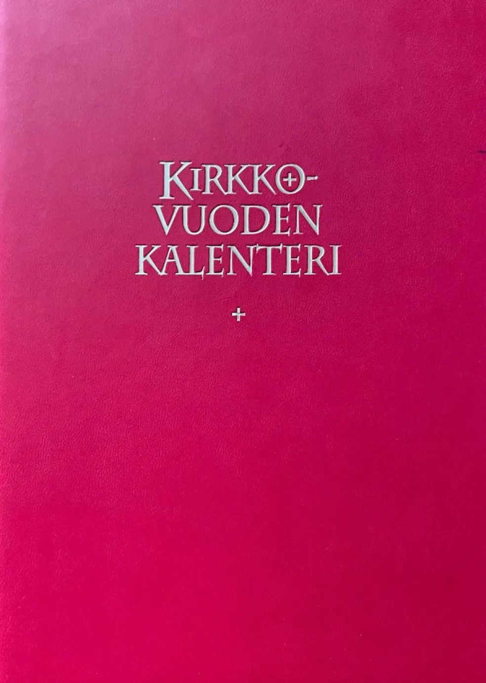 Kirkon viikkomuistio 2025 + punaiset pujotuskannet, kynäpidike