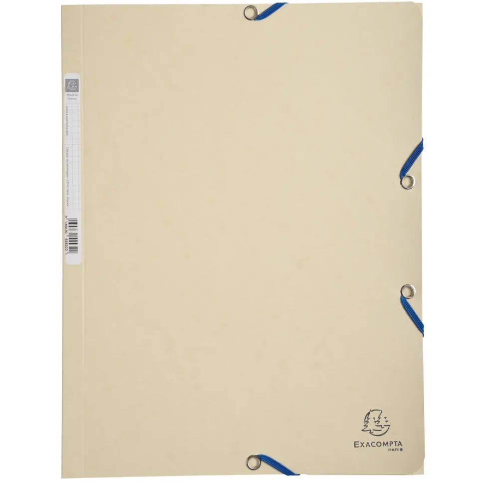Exacompta kulmalukkokansio A4 on valmistettu korkealaatuisesta 400 g/m2:n kestävästä kartongista. 3 läppää ja kuminauhasuljenta pitää sisällön turvassa. Kansion selässä etiketti. 100 % ranskalainen raaka-aineen valmistus valmiiksi tuotteeksi Exacompta-Clairefontaine tehtaalla. FSC®-sertifioitu tuote, vastuullinen metsänhoito.