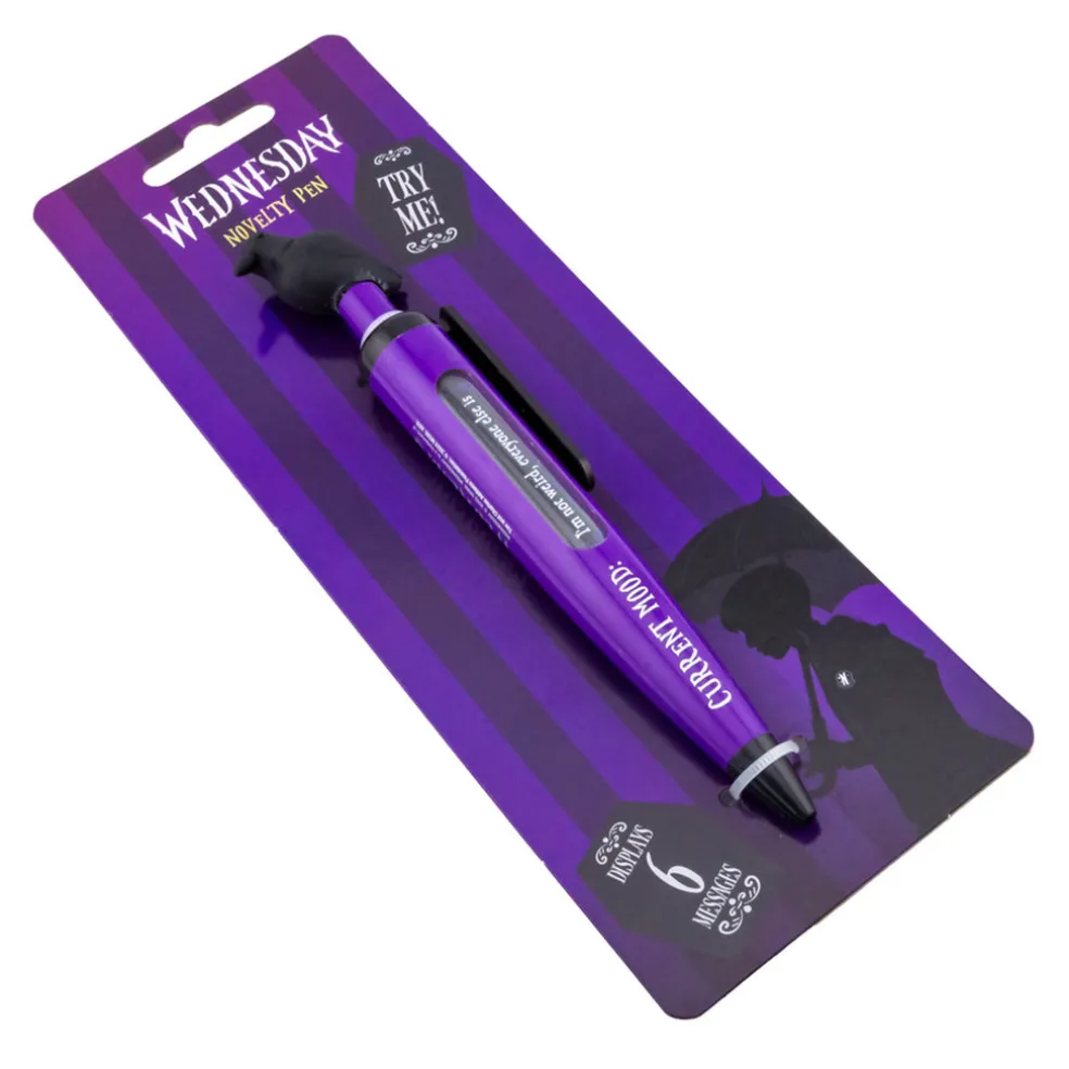 Kuulakärkikynä Wednesday-sarjan faneille on täydellinen tapa tuoda iloa ja inspiraatiota arkeen. Tämä kynä sisältää kuusi erilaista viestiä, joista voit valita juuri sen, joka sopii parhaiten päivän tunnelmaan. Kirjoita muistiinpanoja, päiväkirjaa tai viestejä ystäville ja anna viestien piristää päivääsi. Tämä kynä on loistava lahjaidea kaikille Wednesday-sarjan ystäville ja niille, jotka arvostavat pieniä, mutta merkityksellisiä yksityiskohtia arjessaan.