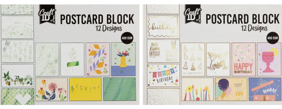 Lehtiössä 12 erilaista postikorttia folioyksityiskohdin. Kaksi erilaista. Verkkokaupan tilauksiin lähetetään 1 saatavilla oleva postikorttipaperisetti.
