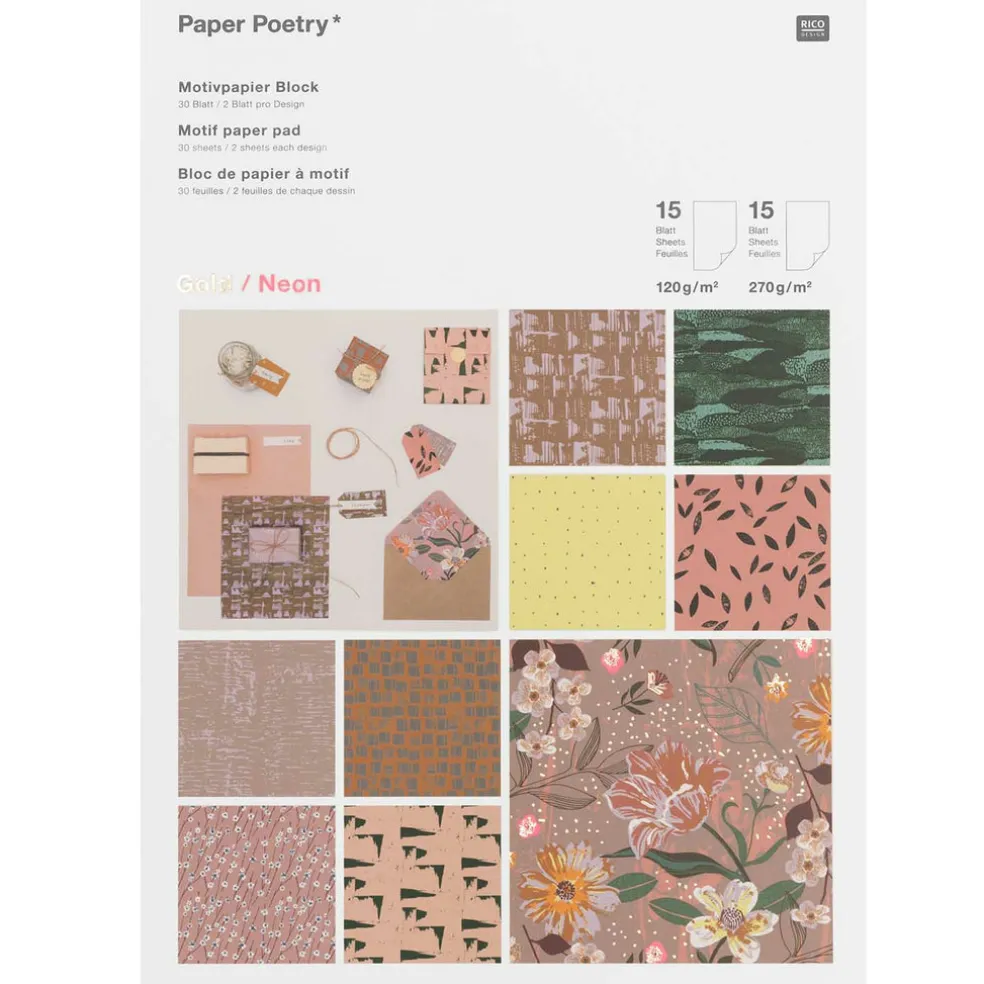 Koristepaperilehtiö, sisältää 15kpl 120g ja 15kpl 270g paperia 210x295mm