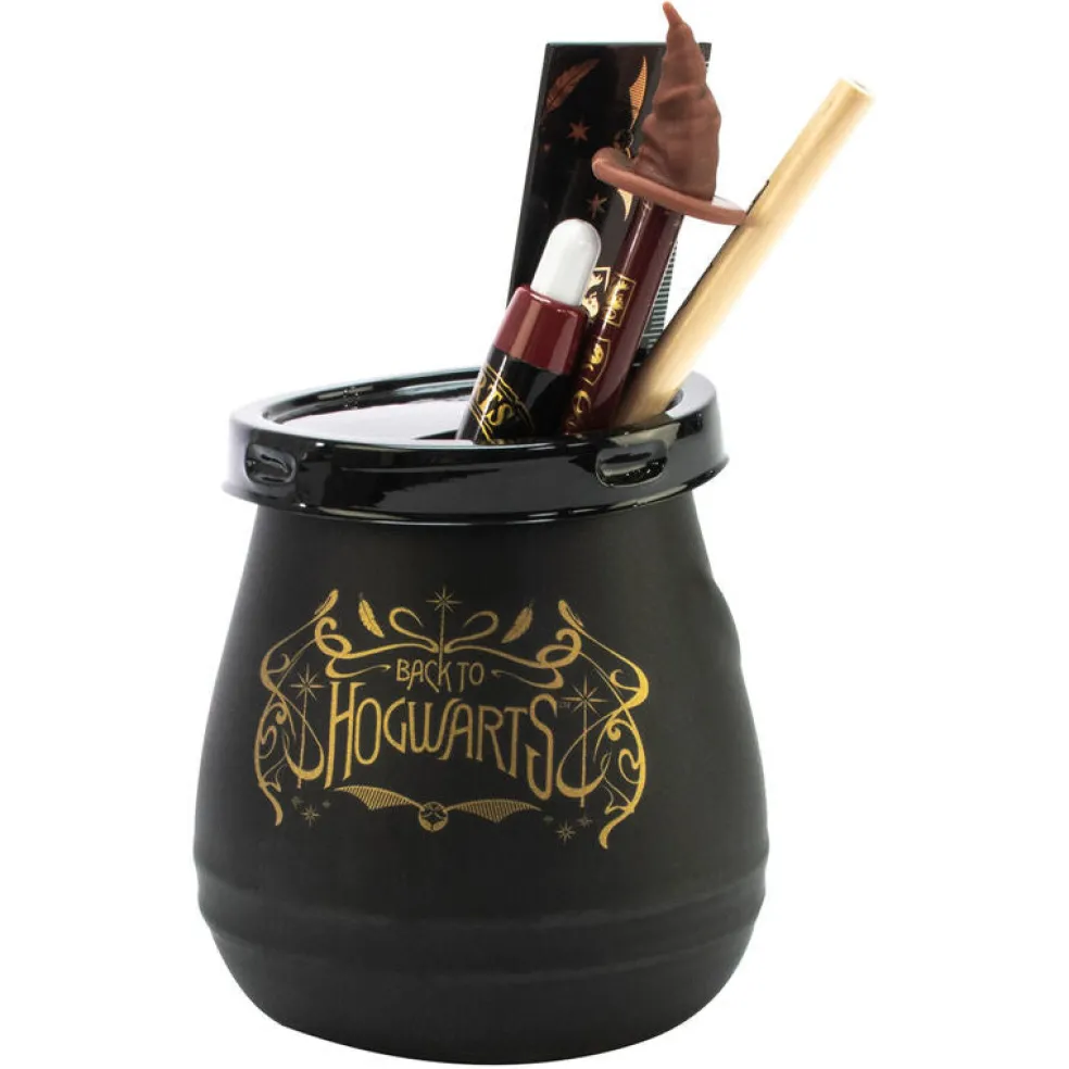 Tämä keraaminen kattila on täydellinen kynäpurkki Harry Potter -faneille! Siinä on kaikki tarvittava kirjoittamiseen ja piirtämiseen: kuulakynä, viivain, lyijykynä ja jopa lajitteluhattukynä. Kattila on koristeltu upeilla Harry Potter -Tylypahka kuvioinnilla ja se tuo ripauksen taikuutta pöydällesi. Harr y Potter kynäpurkki ei vain pidä kyniäsi järjestyksessä, vaan se myös lisää ripauksen taikuutta jokaiseen kirjoitushetkeen. Olipa kyseessä sitten muistiinpanot, luonnokset tai taikasauvan harjoittelu, tämä on täydellinen lisäys Harry Potter -kokoelmaasi.