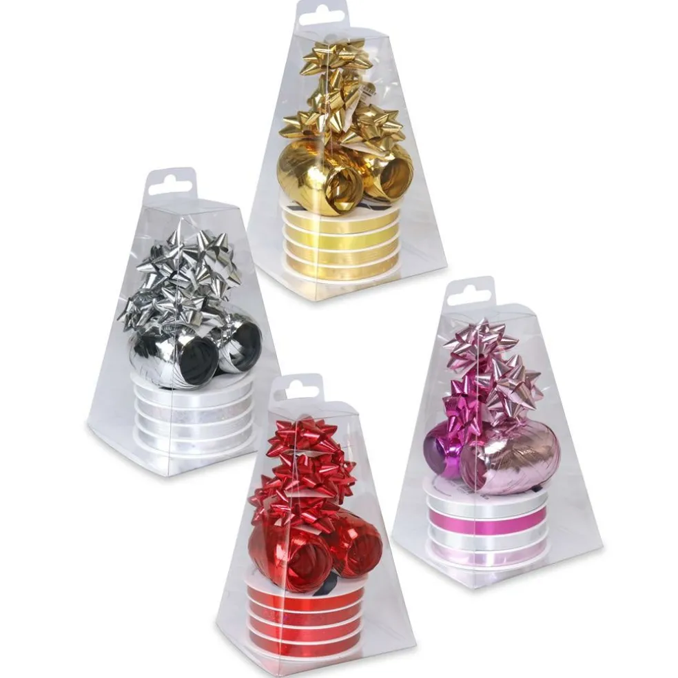 Pakkaus sisältää: lahjanauha 4* 24m + lahjanauha 2*20m +5 rusettia. Väreinä: kulta, hopea, punainen, vihreä. Verkkokaupan tilauksiin lähetetään 1 lahjanauha- ja rusettipakkaus saatavilla olevaa värivaihtoehtoa.