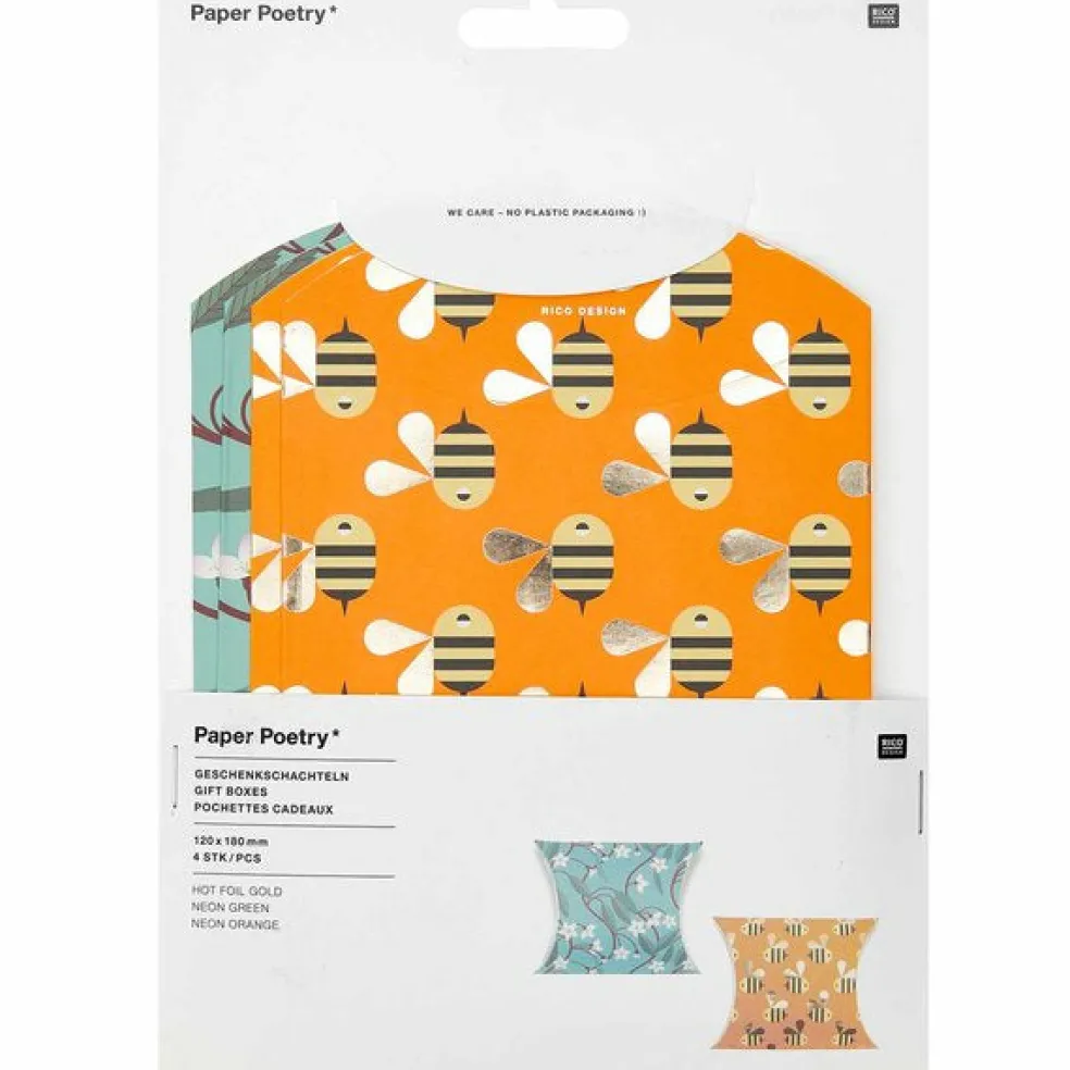 FSC Mix kartongista valmistetut koottavat lahjarasiat ovat kätevä vaihtoehto perinteiselle käärepaperille. Niiden avulla pakkaat pienet lahjat nopeasti ja helposti, ja ne näyttävät aina tyylikkäiltä. Kietaise somistukseksi nauha jos haluat, mutta mikään kiinnitys ei ole tarppen. Setti sisältää neljä lahjarasiaa kahdessa eri kuosissa, joista toisessa on kullanvärinen viimeistely.