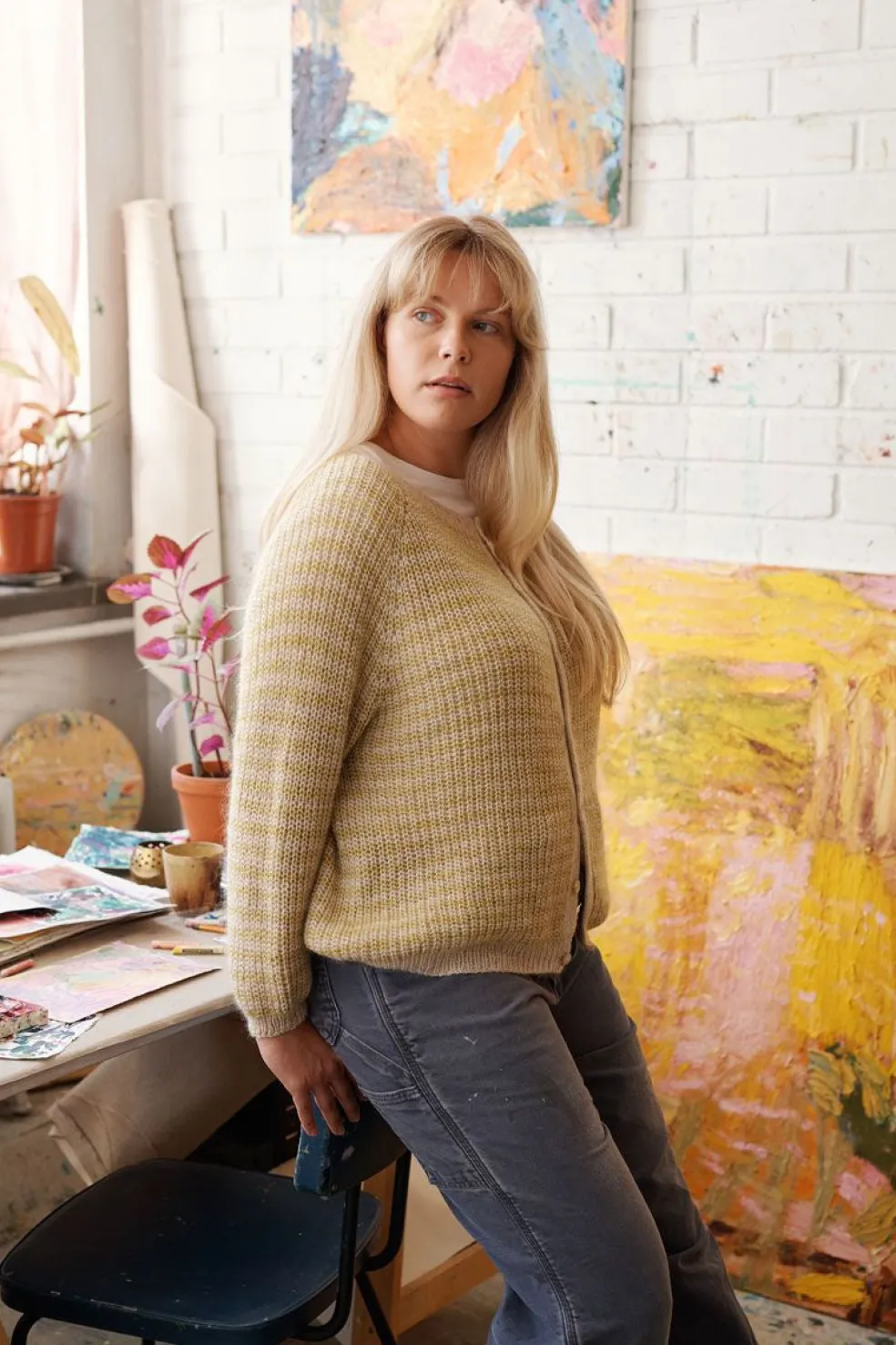 Our lovely spring issue, Laine 24, Brushstrokes, is full of creative energy and soft, joyous spring colours! The photos were taken in an artist’s studio, in all its vibrant, inspiring chaos, and a lush, green park with old deciduous trees and quiet pathways. The knits are delicate, feminine and refined, featuring beautiful textures and interesting technique.