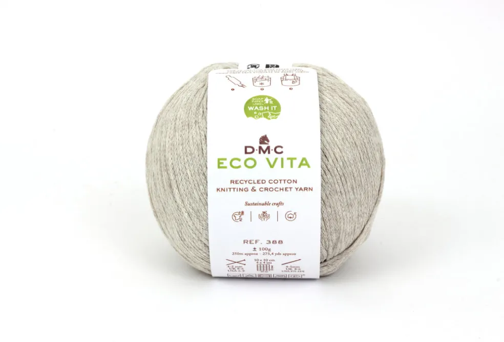 Eco Vita on ekologinen neule- ja virkkauslanka, joka valmistetaan täysin kierrätetyistä materiaaleista. Langan raaka-aineena käytetään tekstiiliteollisuuden ylijäämämateriaalia ja kierrätettyjä vaatteita. Rakenteeltaan tuubimainen lanka on pehmeän tuntuinen ja helppo työstää, sillä lanka ei lohkeile. Puikko- ja koukkusuositus 4-5. Ympäristöystävällinen vyöte liukenee veteen ja muuttuu saippuaksi, joten sen voi hyödyntää valmiin tuotteen pesuun.