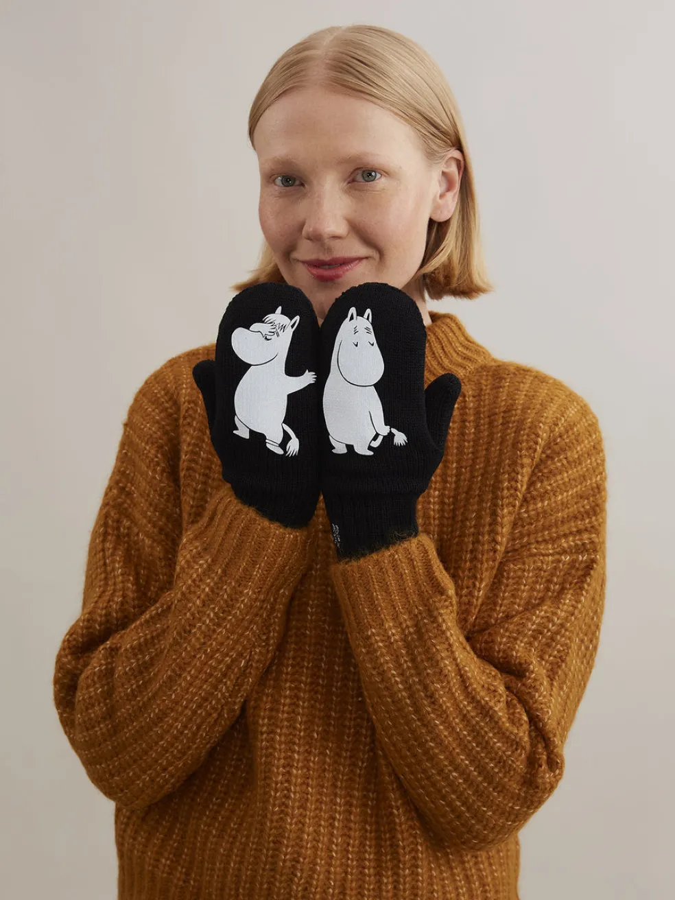 Muumipeikko ja Niiskuneiti tunteilevat ihanissa Ihastus-lapasissa. Muumihahmot on painettu lapasten selkäpuolelle voimakkaasti heijastavalla materiaalilla. Käsineet on valmistettu Suomessa korkealaatuisesta mulesing-vapaasta, 100% merinovillasta. Materiaali tuntuu ylellisen pehmeältä käsiä vasten ja kaksinkertainen neulos pitää kätesi miellyttävän lämpiminä. Tuote kuuluu Heijastavat kädet-mallistoon, joka on voittanut kunniamaininnan kansainvälisessä Red Dot Design- kilpailussa. Moiko x Moomin -yhteistyötuote.