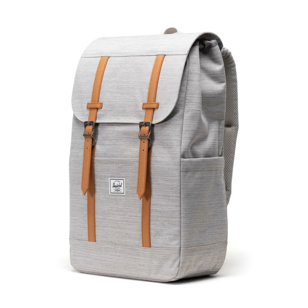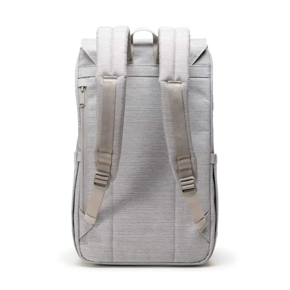 Retreat Backpack Light Grey -repun lisäkuva nro 5 on kokomustan vastaavan mallin kuva. Kuvasta näkee miltä reppu näyttää, kun ihminen sitä käyttää.