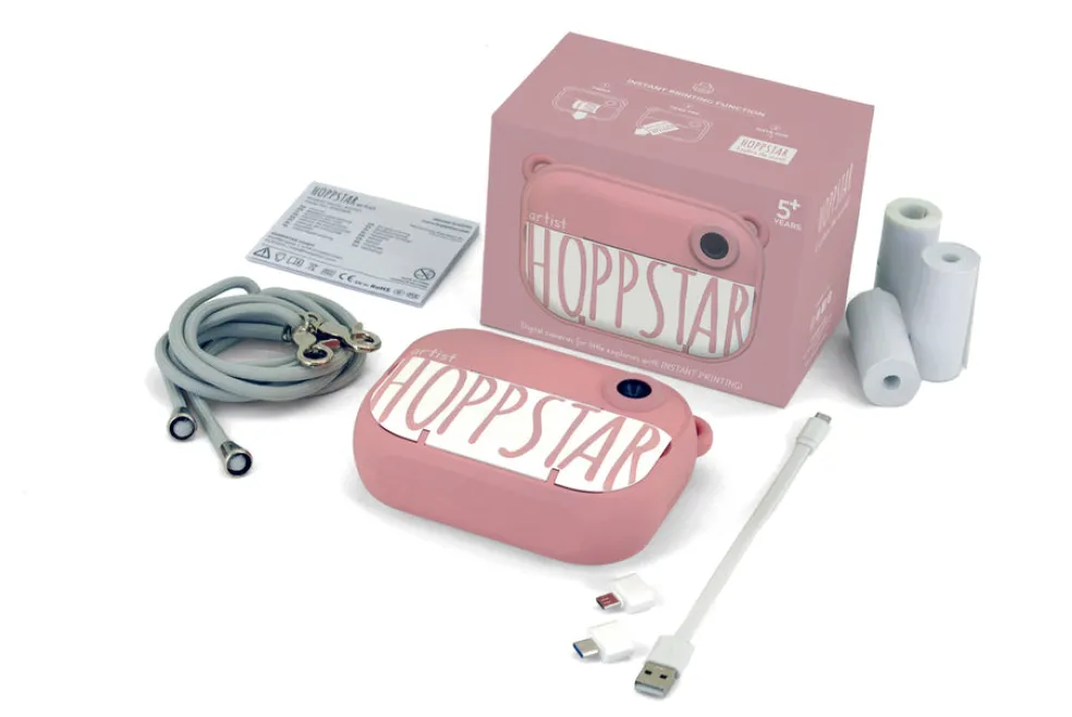 – Paketti sisältää: Hoppstar Artist -kamera, 16GB SD-kortti, kantokaulanauha, USB-latauskaapelin, 1x OTG-sovittimen Micro USB, 1x OTG-sovittimen tyyppi C, 3 ylimääräistä paperirullaa, manuaalinen