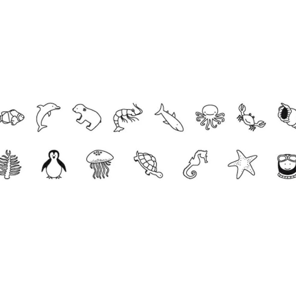 Leimasinsetti, jossa 15 leimasinta. Leimojen aiheena eläimet. Leimasimessa musta muste. Leiman koko 2×2 cm.