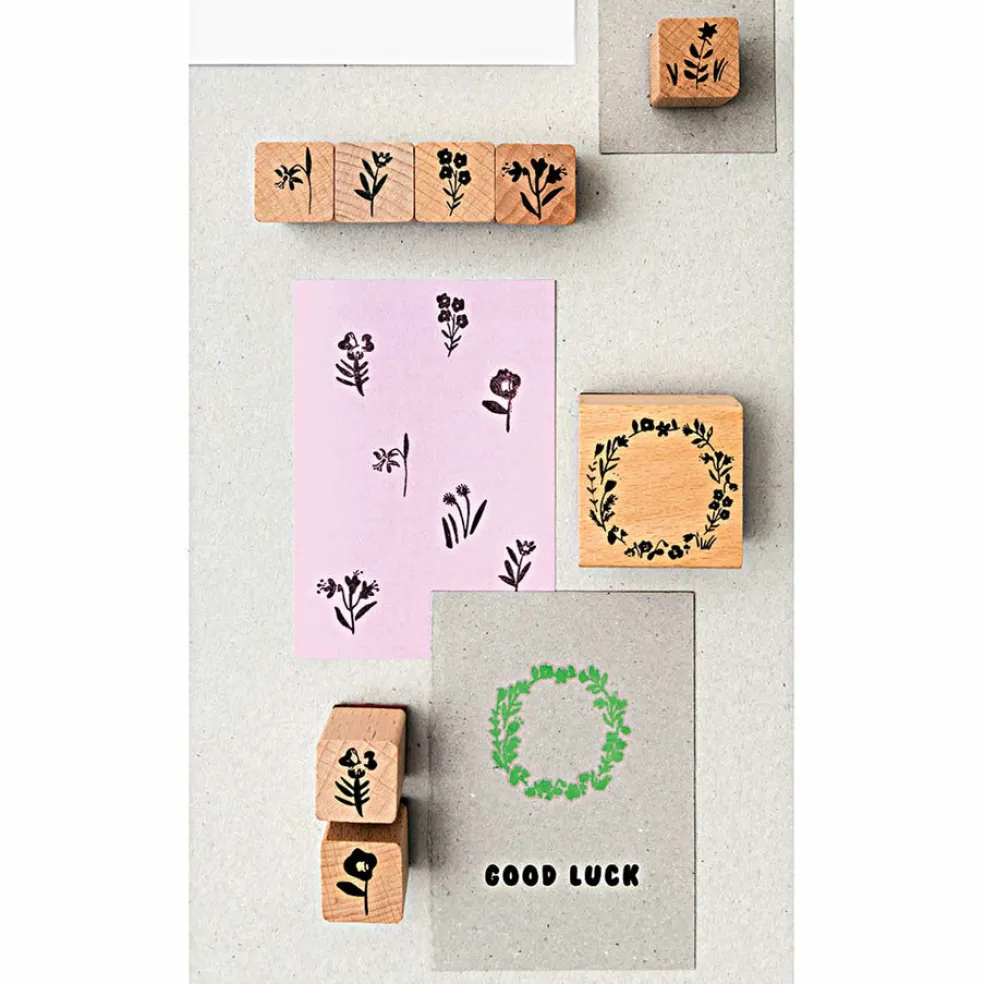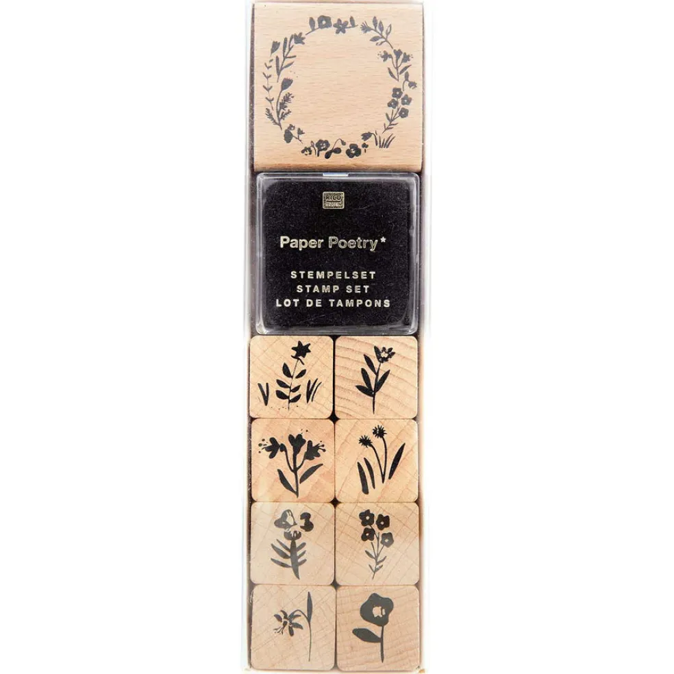 Rico Design leimasimilla luot kauniita ja persoonallisia tervehdyksiä, kutsuja ja paikkakortteja eri tilaisuuksiin. Jotta pääset alkuun tarvittava leimatyyny on pakkauksessa mukana! Sisältö: 9 leimasinta ja mustetyyny.