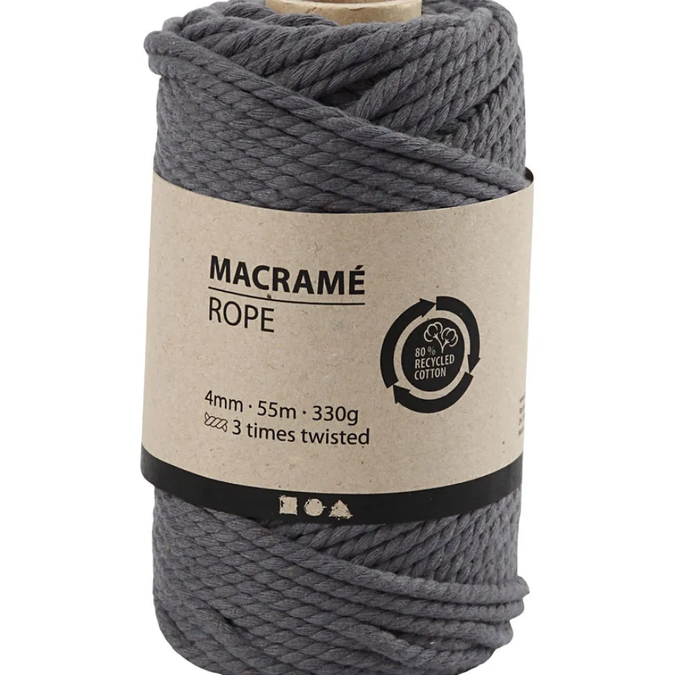 Kolmisäikeinen makrameenyöri, joka on valmistettu 80% kierrätetystä puuvillasta ja 20% polyesteria. 5035738