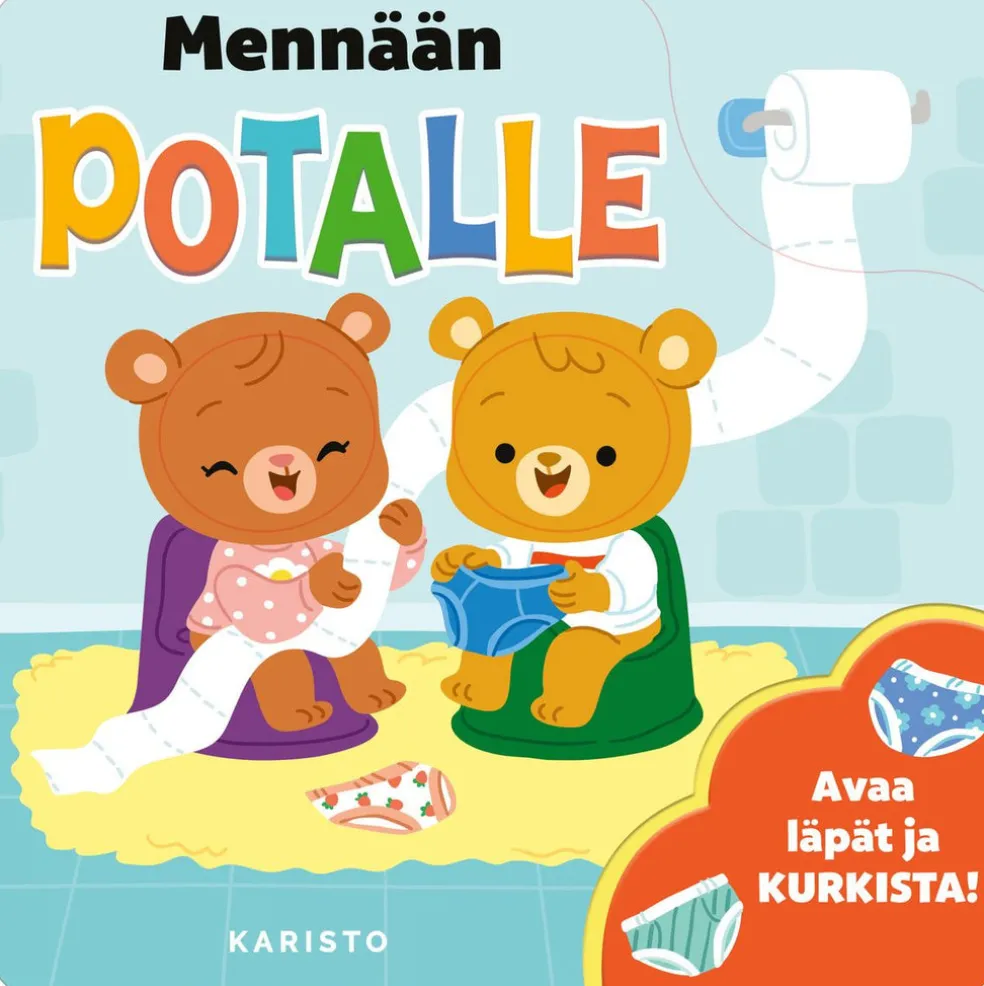 Potalle voi opetella hauskasti kivojen nallekarhujen ja kavereiden kanssa. Mitä kaikkea potalla ja pytyllä käyntiin liittyy? Paljon luukkuja ja läppiä, joista paljastuu lisää katseltavaa ja tutkittavaa.
