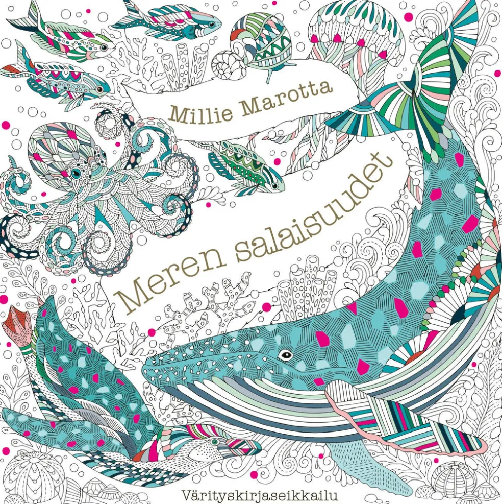 Merten uskomattomat otukset ovat kiehtoneet supersuositun walesilaisen kuvittajan Millie Marottan mieltä vuosien ajan, elivätpä ne Etelä-Kiinan meren lämpimissä vesissä, Etelämantereen jääkylmillä rannikoilla, Ningaloon koralliriutoilla tai Walesin tuulisissa, kesyttömissä vesissä. Tämä värityskirja juhlistaa mertemme uhanalaista elämää ja kutsuu samalla rauhoittumaan meren ihmeiden äärelle.Tervetuloa huojuviin ruskolevämetsiin ja häikäiseville koralliriutoille, jyliseville aalloille ja pilkkopimeisiin syvyyksiin tutkimaan värien, kuvioiden ja tekstuurien runsautta. Päästä mielikuvituksesi valloilleen ja herätä värikynien avulla henkiin meduusan herkät sävyt, meritähtien voimakkaan geometriset kuviot, simpukankuorten vaaleanpunaisen ja harmaan vivahteet sekä väriään vaihtavien seepioiden hypnoottinen valoshow.