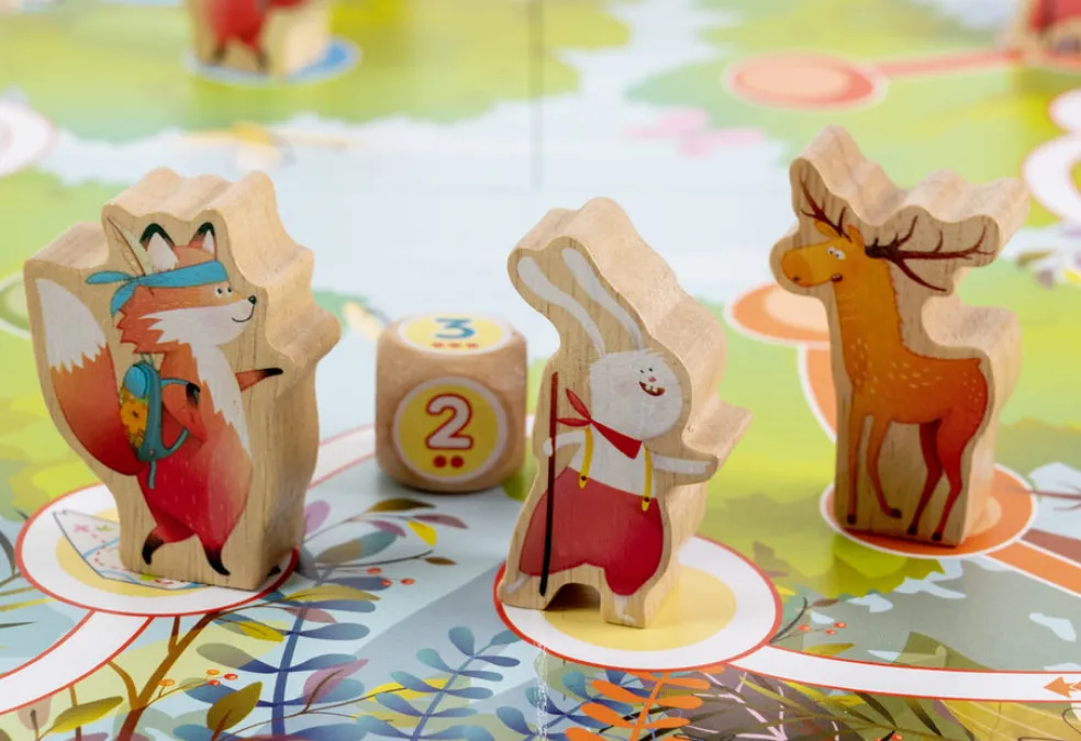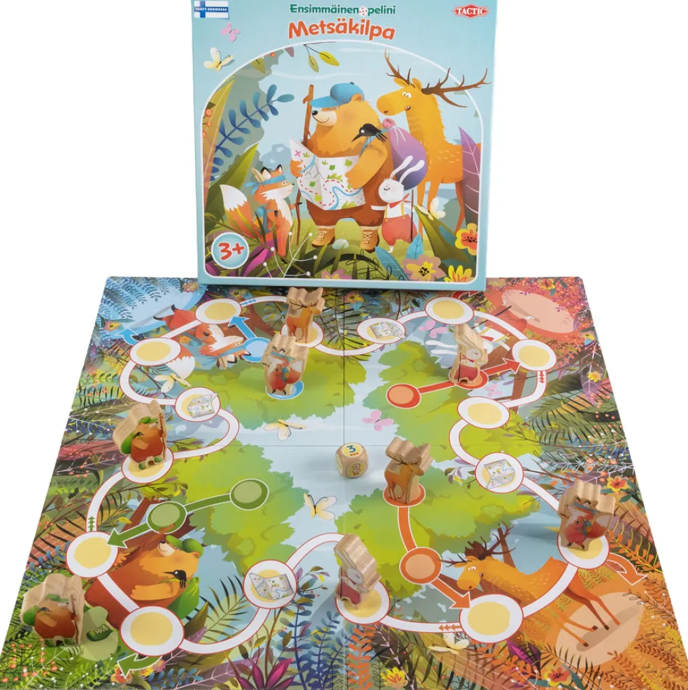 Pinkaise metsän halki! Se, joka ensimmäisenä selvittää pelireitin ja tuo pelinappulansa maaliviivalle, voittaa kisan. Yllätysapua saat erikoislaatoista! Nuorimmille pelaajille sopiva mutkaton peli. Sisältää 8 söpöä puuhahmoa ja puisen nopan. Ei lainkaan muoviosia! Ikäsuositus: 3+ v. Pelaajien määrä: 2-4. Pelin kesto: 20+ min.