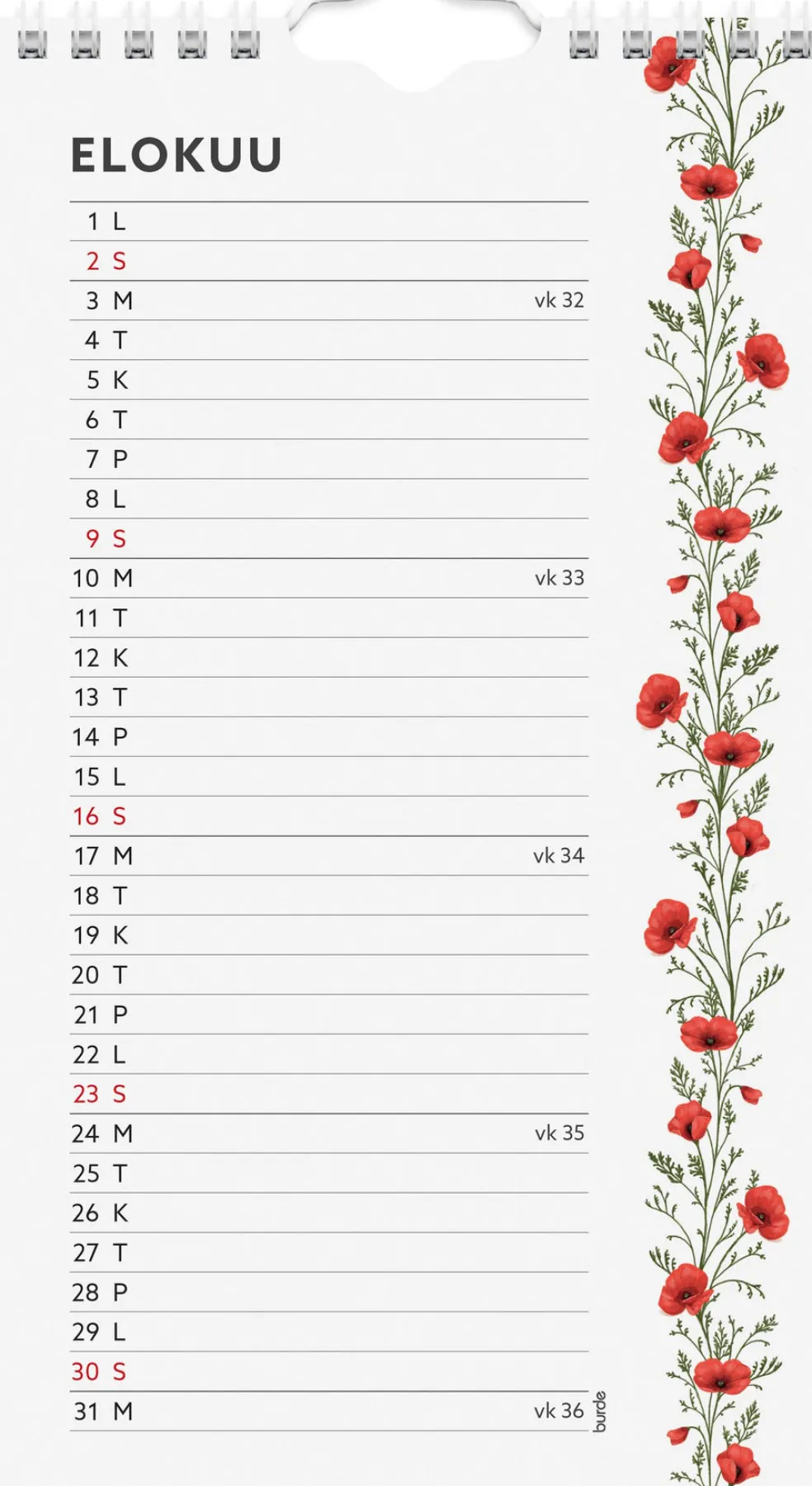 - Tuotemuodon lisätiedot Seinäkalenteri
