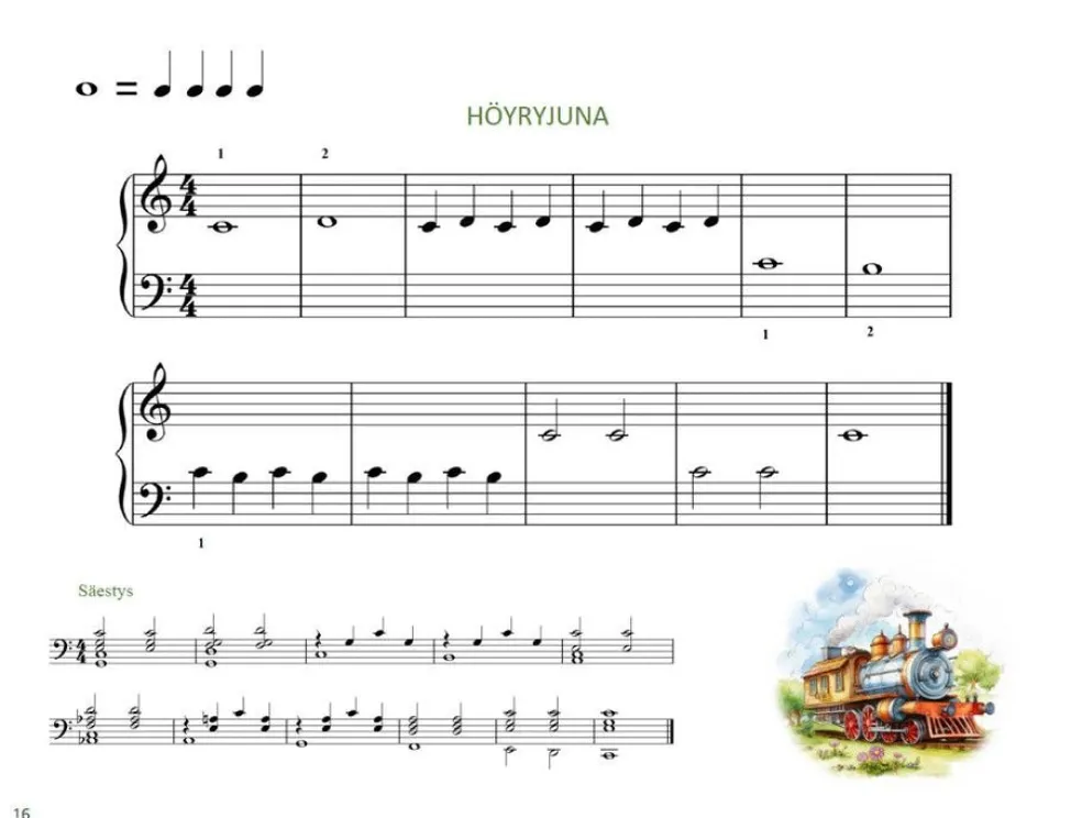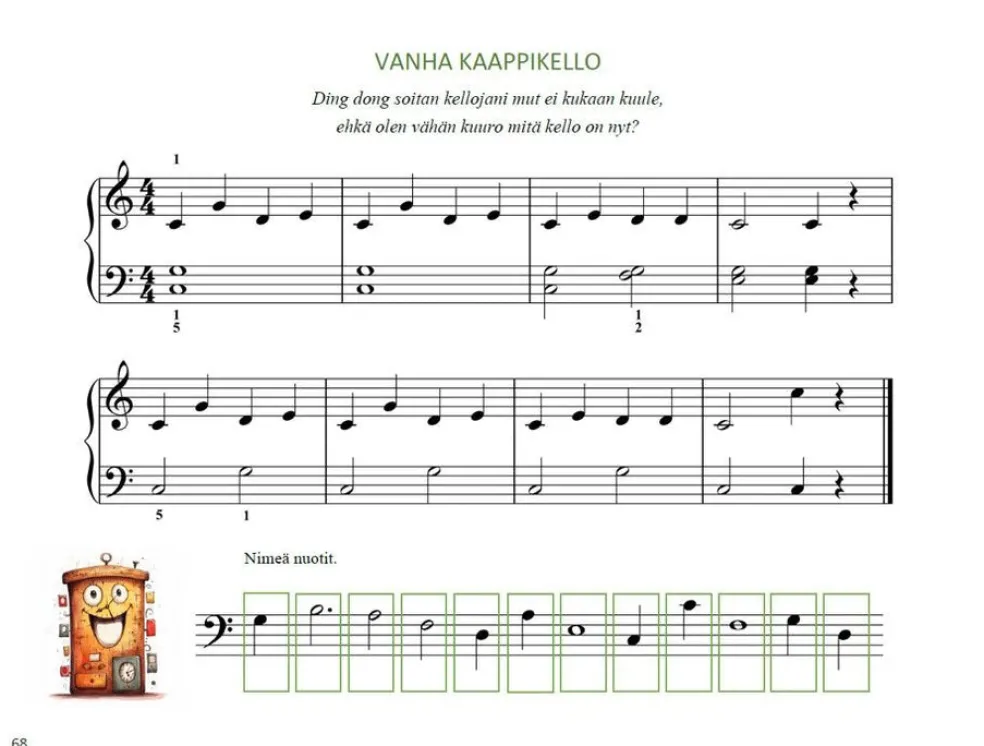 Erityisesti 5-8-vuotiaille suunnatussa Minun pianoni -alkeiskirjassa opitaan yli 60 viehättävän pikkukappaleen kautta perusrytmit, tahtiosoitukset sekä nuottien paikat ja nimet kahden oktaavin alueella. Osaan kappaleista on liitetty myös sanat.
